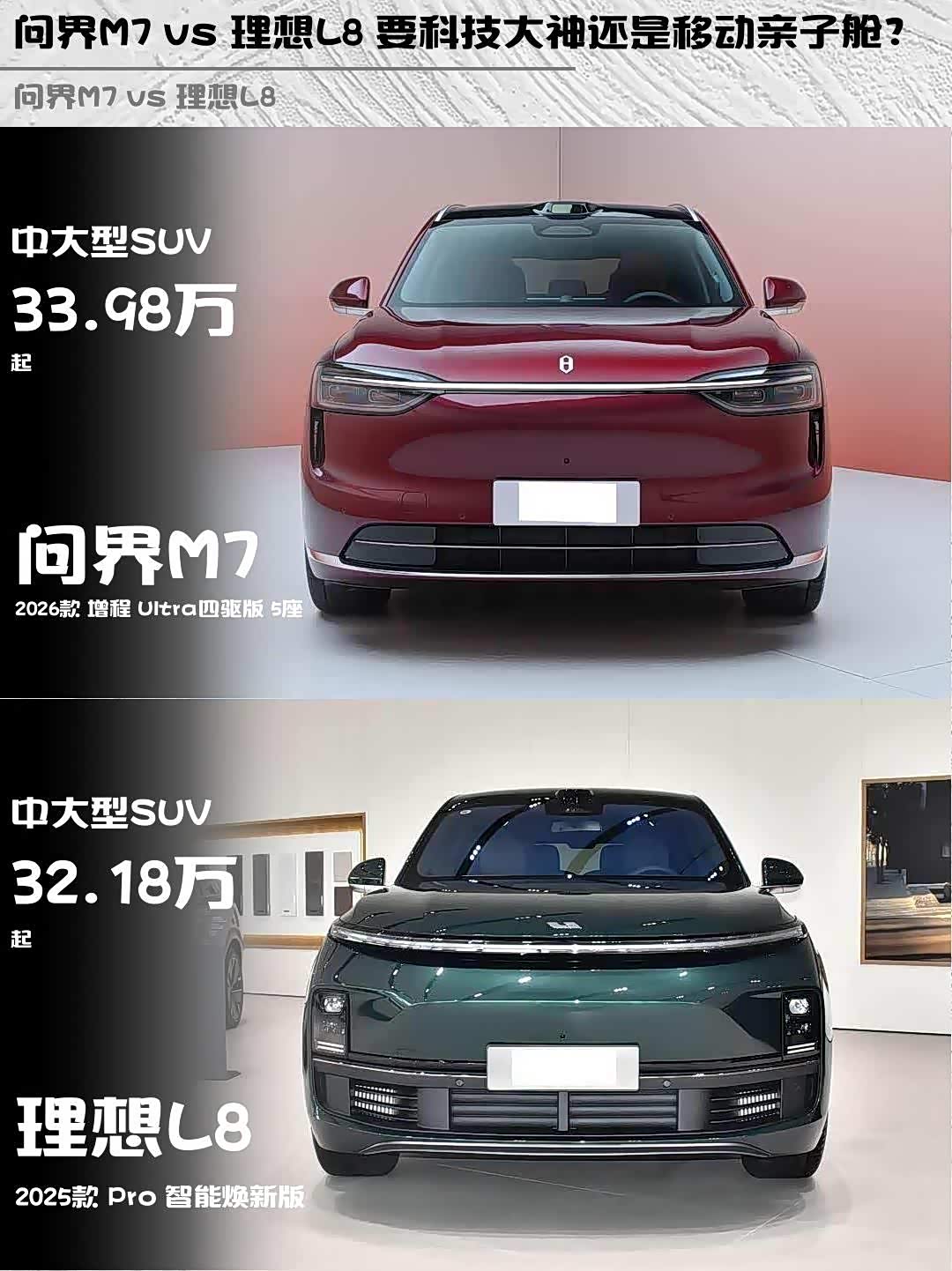 最近在纠结 问界M7(参数|询价) 2026款增程Ultra四驱版5座和理想L8 2025款Pro智能焕新版的朋友看过来!作为深度体验过两台车的车主,掏心窝子分享真实对比感受👇