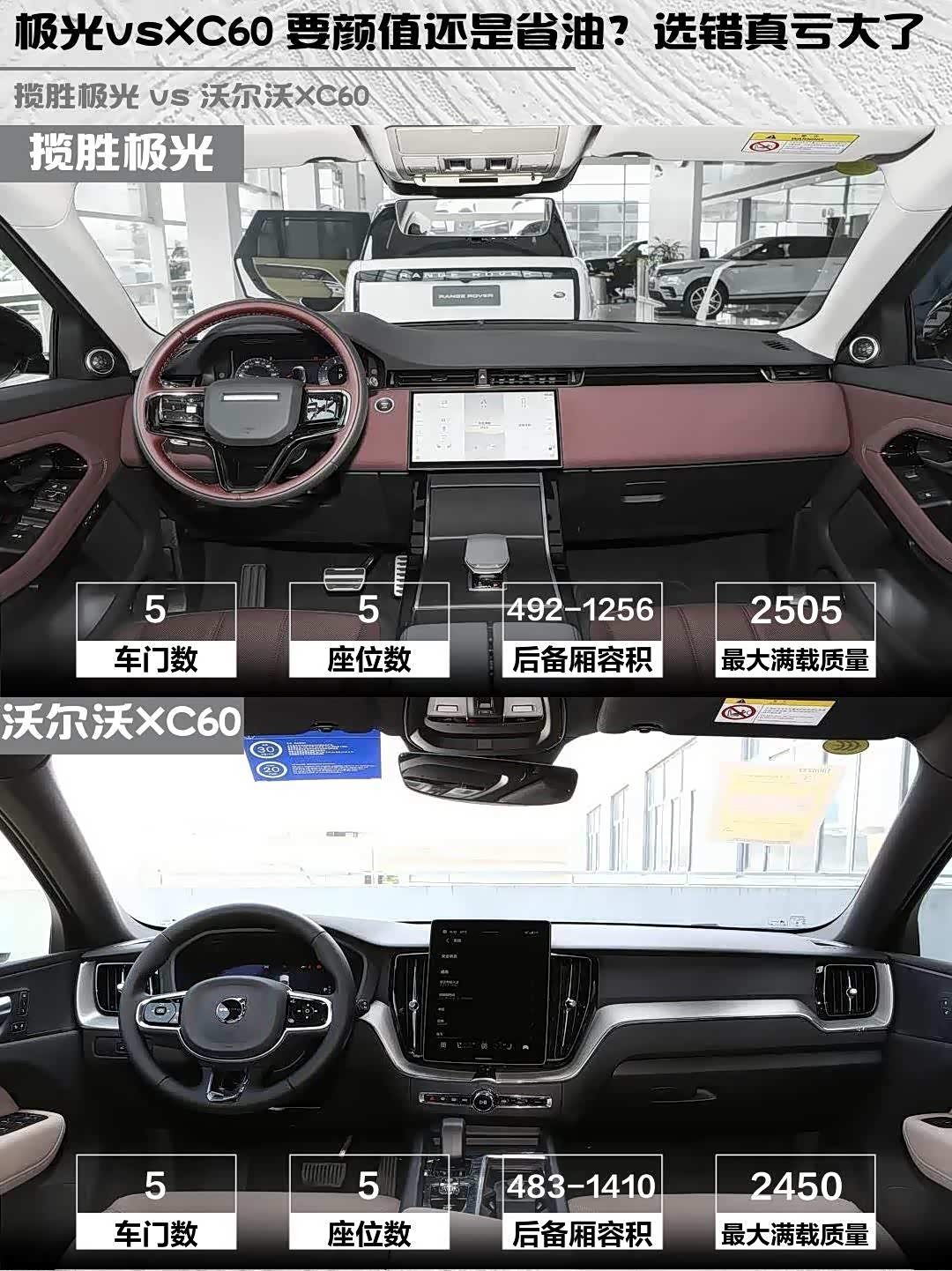 极光后备箱492L比XC60的483L略大,但后排座椅放倒后XC60能扩展到1410L。极光的手机APP能远程启动发动机+开空调,夏天提前降温真香!XC60的车机支持语音控空调,但偶尔会卡顿...