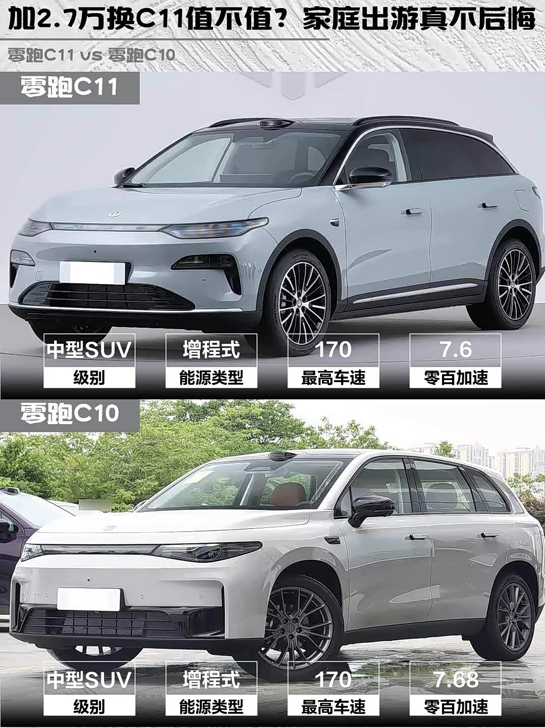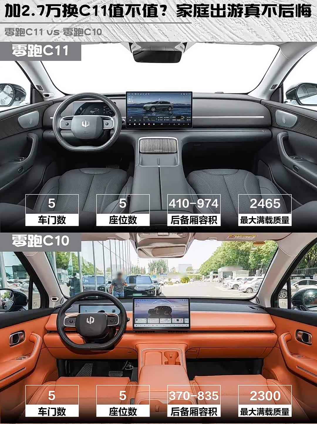 价格上C10便宜2.7万,但C11多出的配置绝对物有所值:更大电池、更强电机、更豪华内饰、更实用空间...如果是家庭用户或者经常自驾游,强烈建议加预算上C11,长远来看更划算!💰