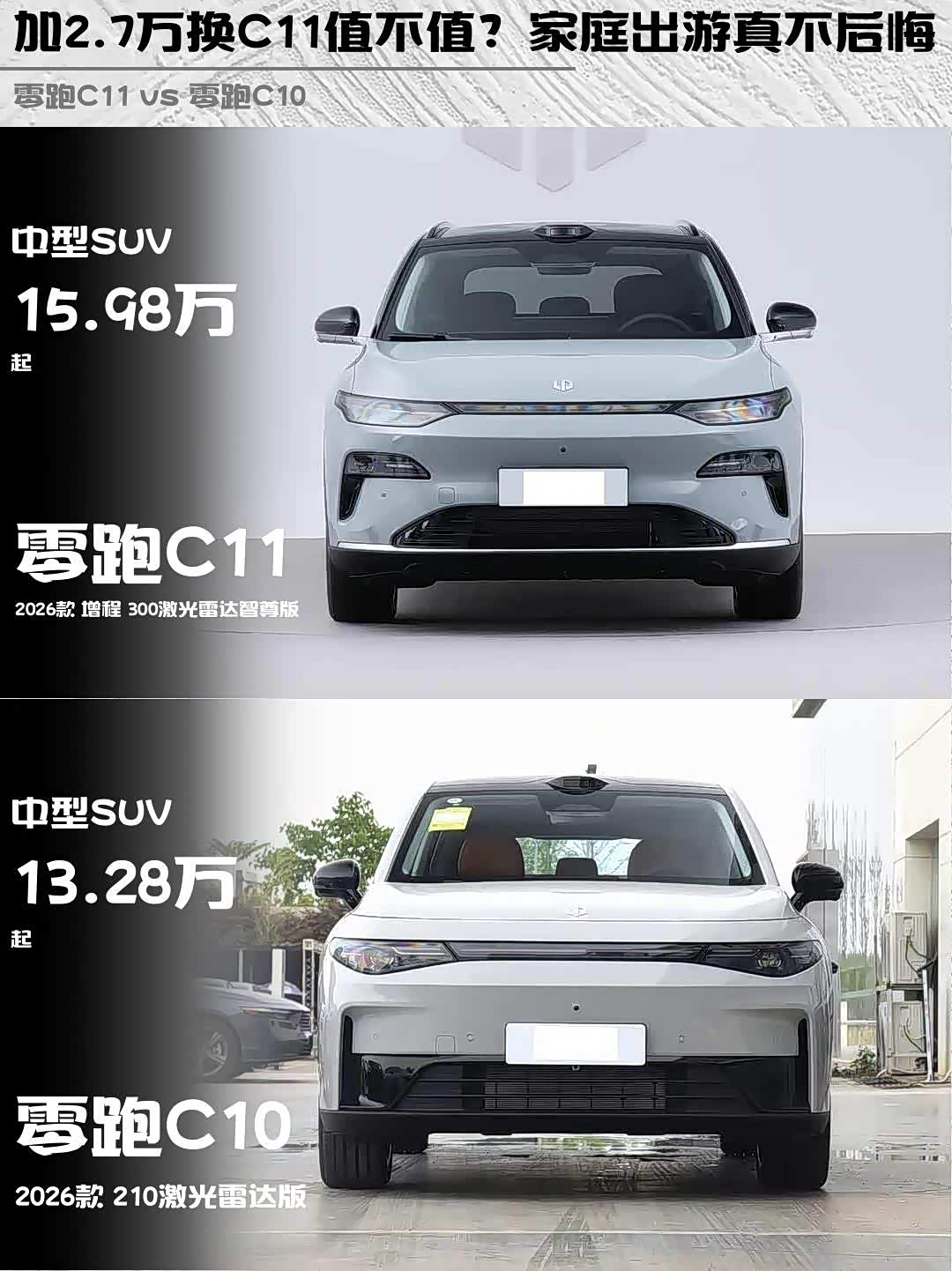 车家号·0浏览·2026-02-22 08:33 · 北京最近在纠结 零跑C11(参数|询价) 2026款 增程 300激光雷达智尊版和零跑C10 2026款 210激光雷达版的朋友看过来!作为深度体验过两款车的车主,这篇对比绝对能帮你理清思路~🔍