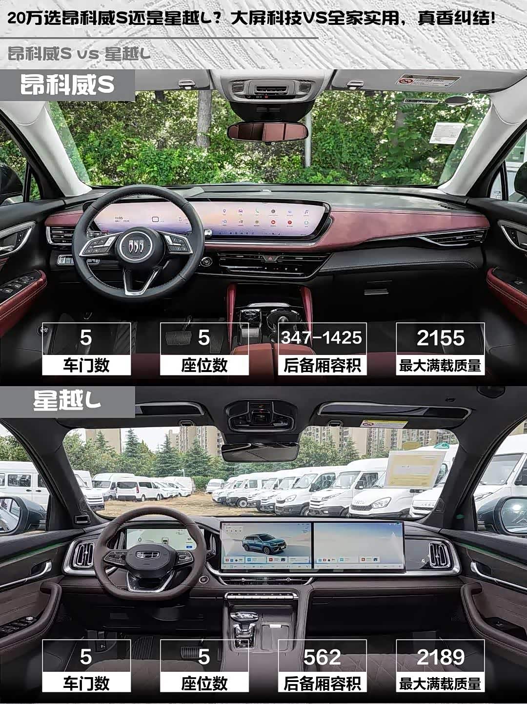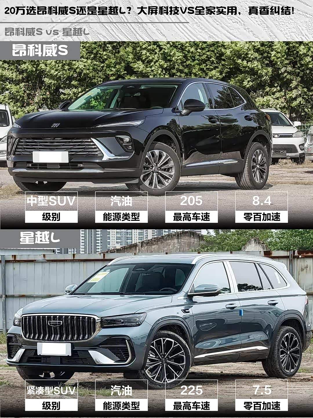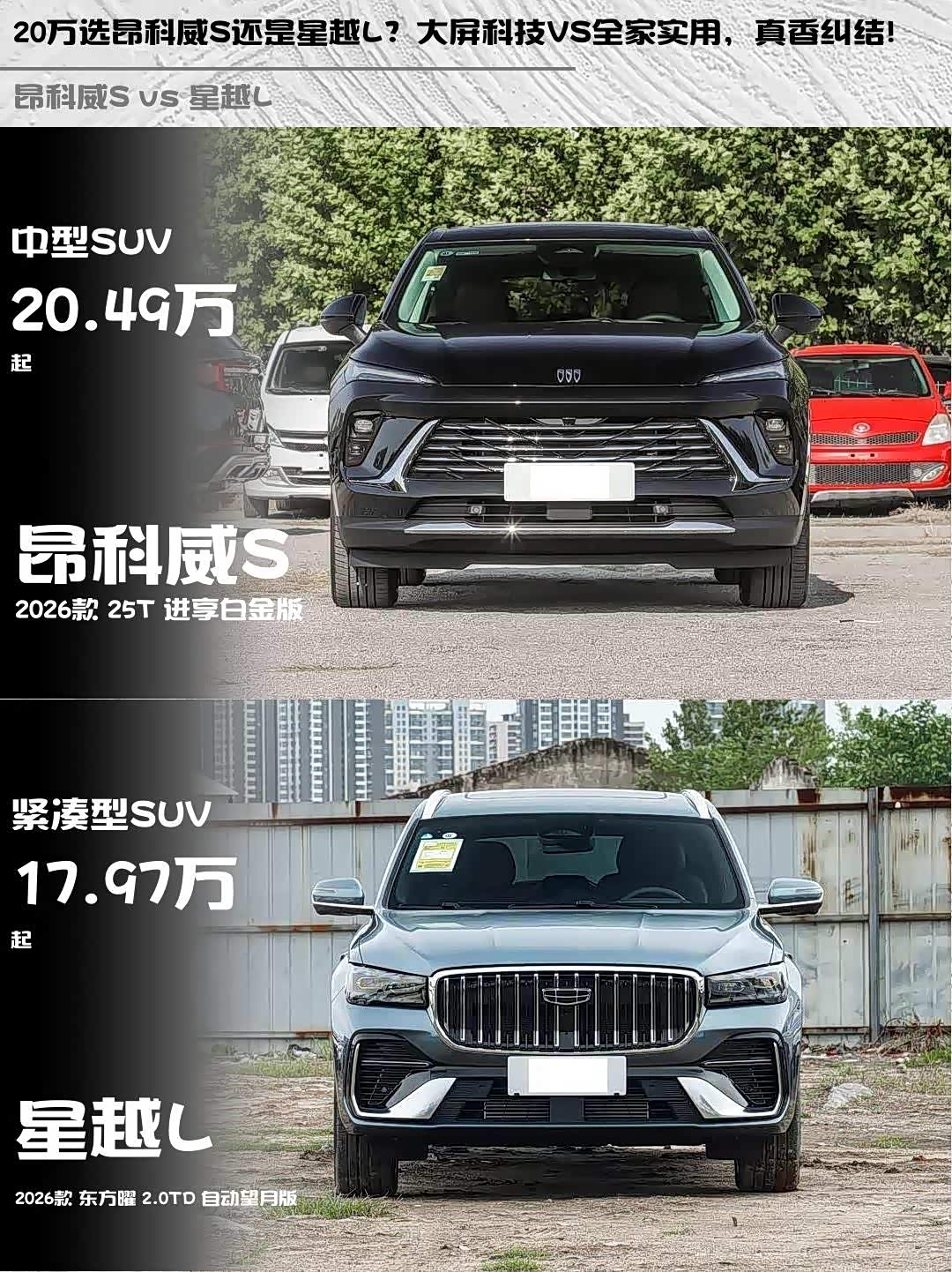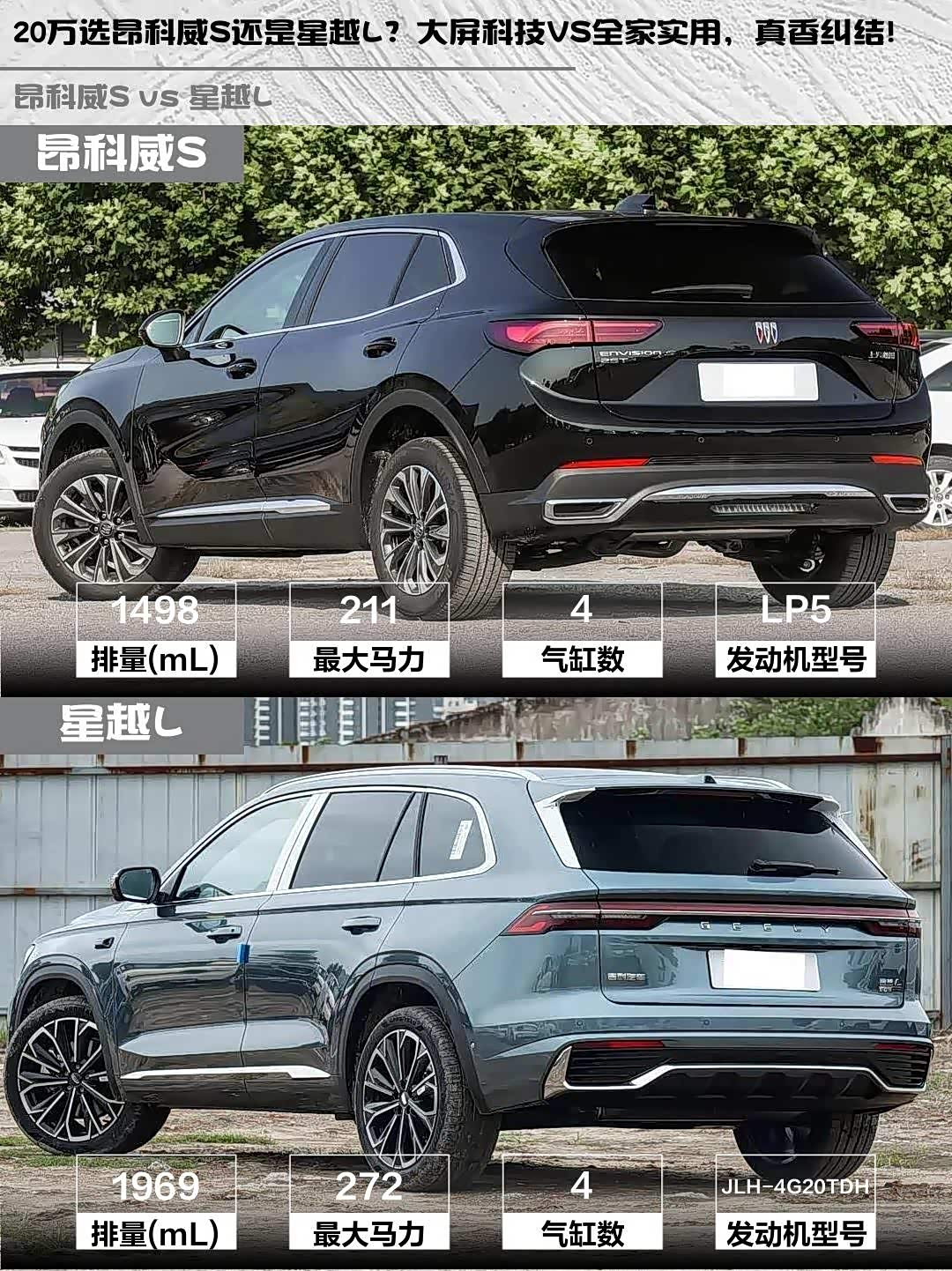 20万选昂科威S还是星越L?大屏科技VS全家实用,真香纠结!