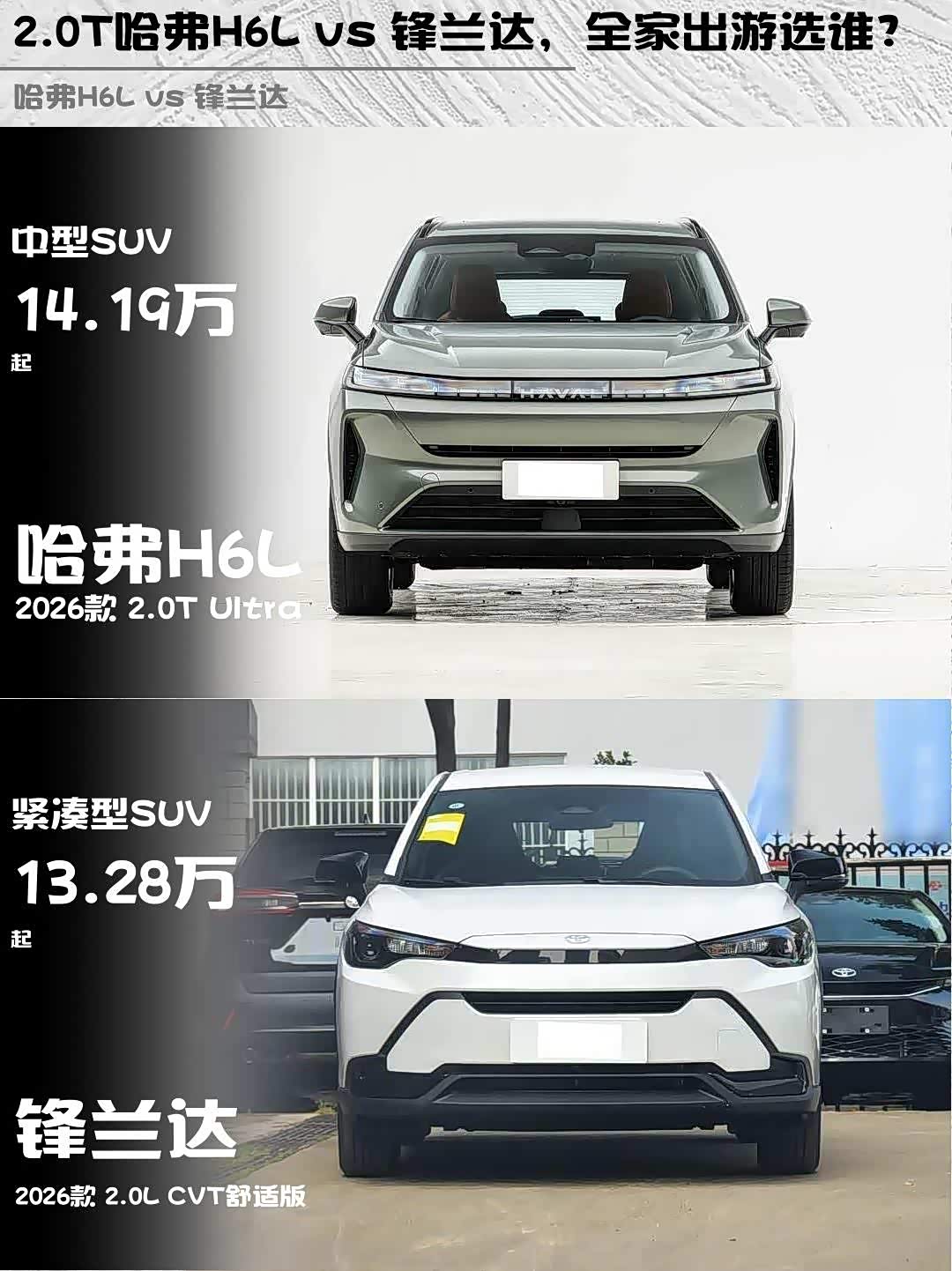 哈弗H6L(参数|询价) 2026款 2.0T Ultra vs 锋兰达 2026款 2.0L CVT舒适版,这两台15万级SUV到底怎么选?看完这篇对比你就懂了!🔥