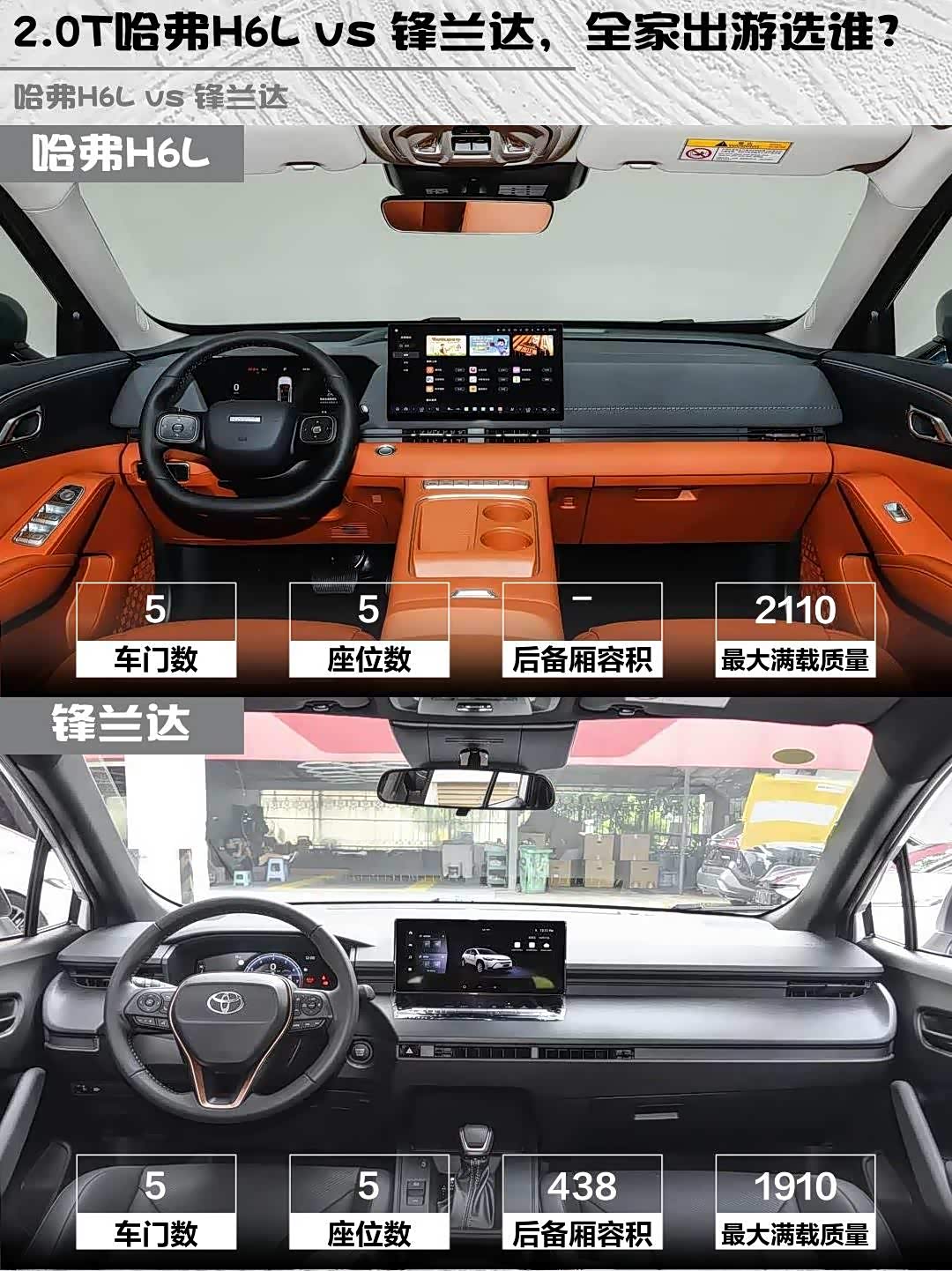 想要大空间、强动力、高配置,经常全家出游的选哈弗H6L;更看重省油保值、市区代步为主的可以考虑锋兰达。两台车风格差异明显,建议都去试驾下,感受最真实!