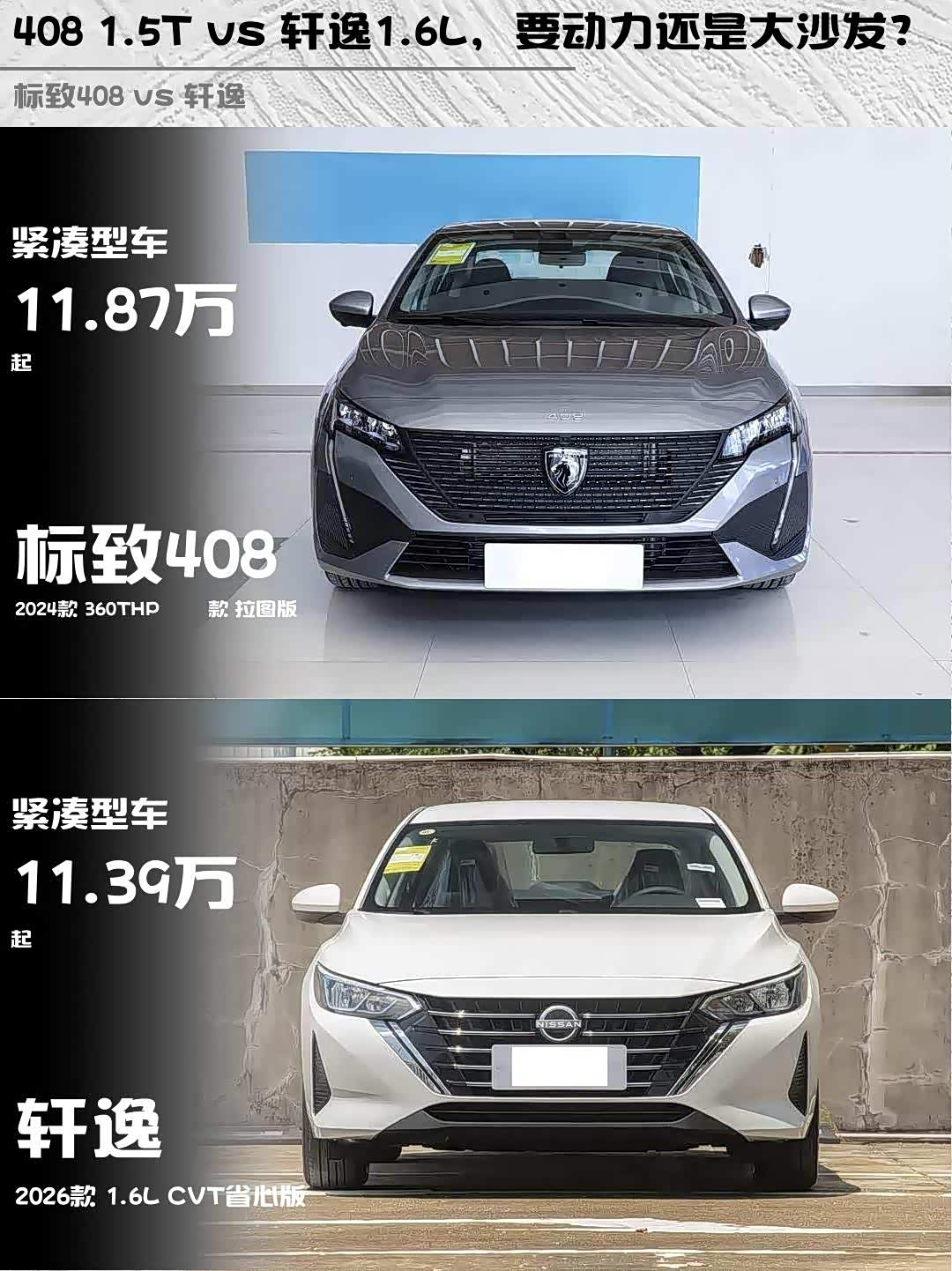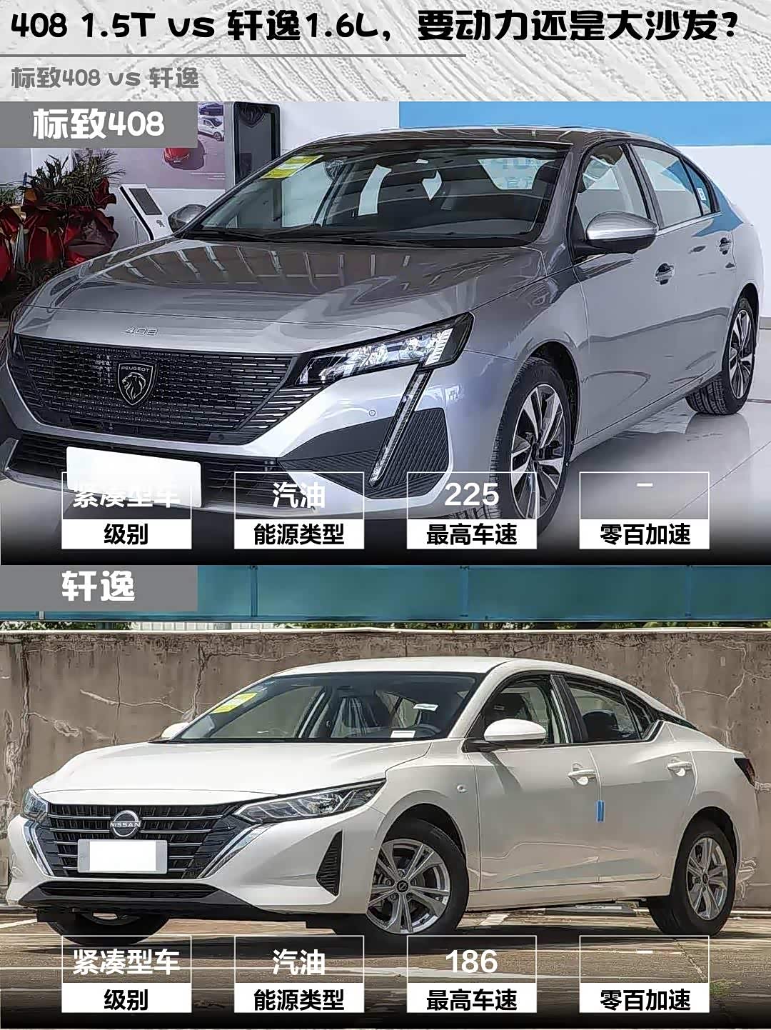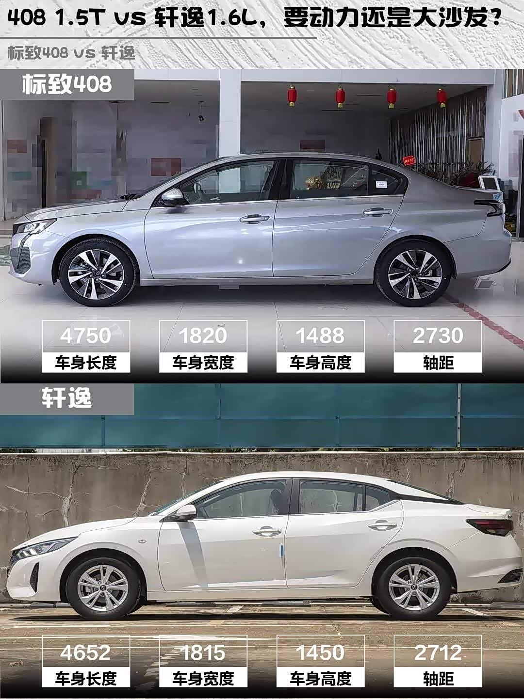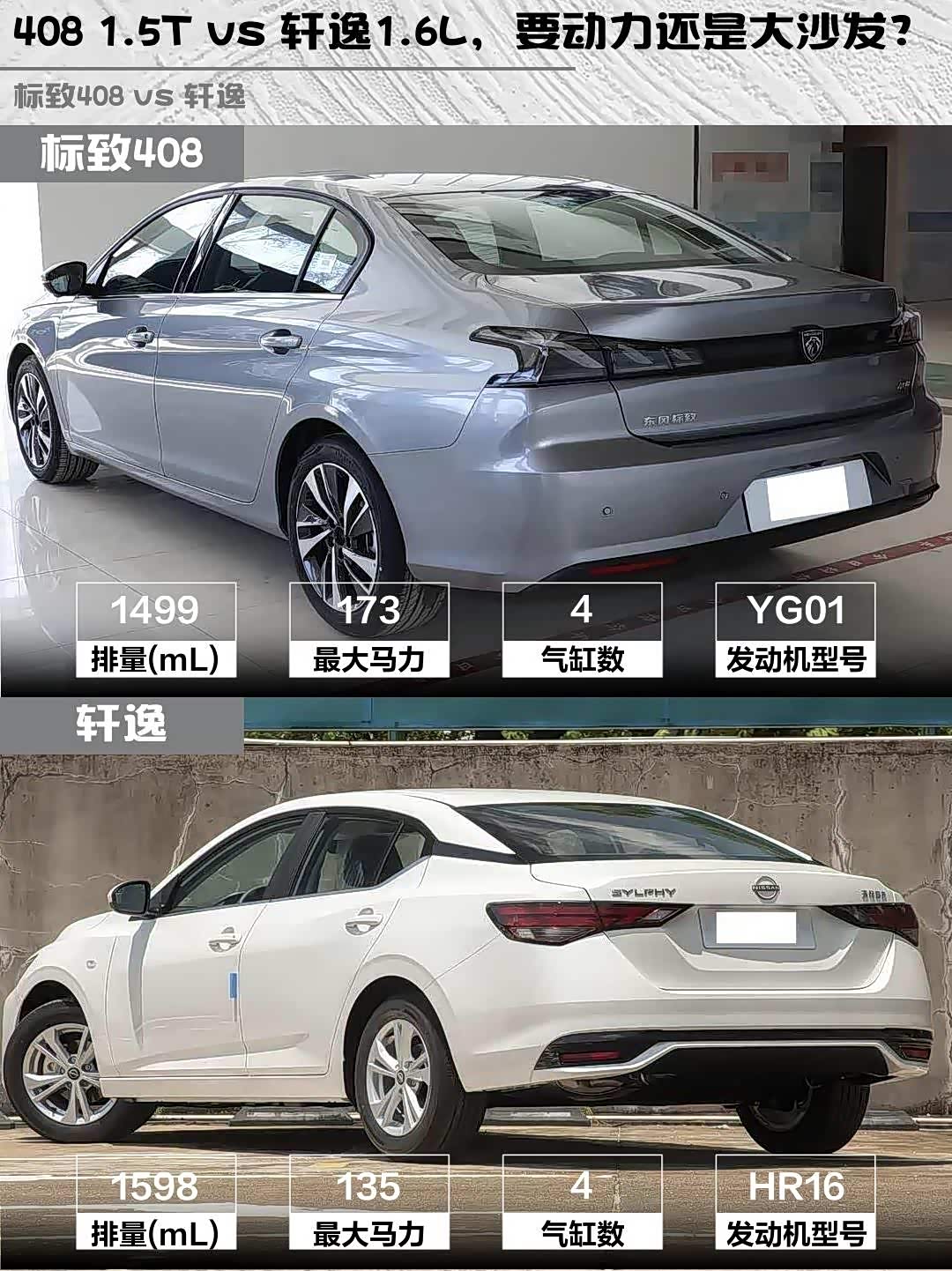 408 1.5T vs 轩逸1.6L,要动力还是大沙发?
