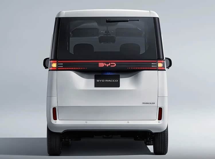 车身尺寸方面,官方公布新车长宽高分别3395/1475/1800mm,轴距达2750mm,采用“四轮四角”设计,通过短前后悬、长轴距的布局,在有限的车身长度内最大化车内空间,同时提升车辆在狭窄路况下的通过性与稳定性,完全符合日本K-Car的法规要求。车尾设计简洁方正,黑色尾窗与车身涂装通过贯穿式尾灯衔接,黑色灯罩内嵌入环形红色光带,搭配可发光的BYD尾标,辨识度极高。