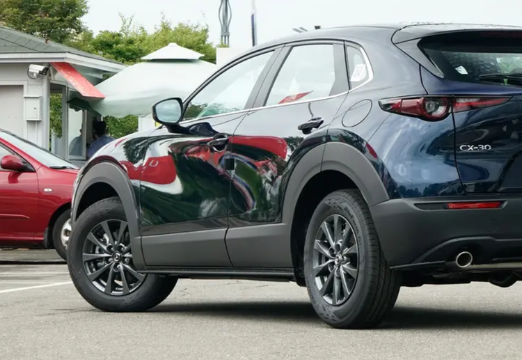 马自达CX-30的核心卖点就是进口零部件达到百分70左右,因此品质上值得点赞。然后车长为4395毫米,轴距为2653毫米,参数与空间并没有优势,它是属于短轴类型的小型SUV,甚至比较靠近两厢车的布局,关键它采用SUV的车身结构布局,所以整体上给人感觉还是挺大气的。那它车门也采用内凹布局,保留有实体门把手和黑色饰板,轮毂造型也很运动,就是侧面给人感觉很运动很大气,包括它的转向手感以及侧倾表现与两厢车也没什么区别,但是离地间隙又比紧凑型SUV更好,更高的通过性也是马自达CX-30特色魅力了。