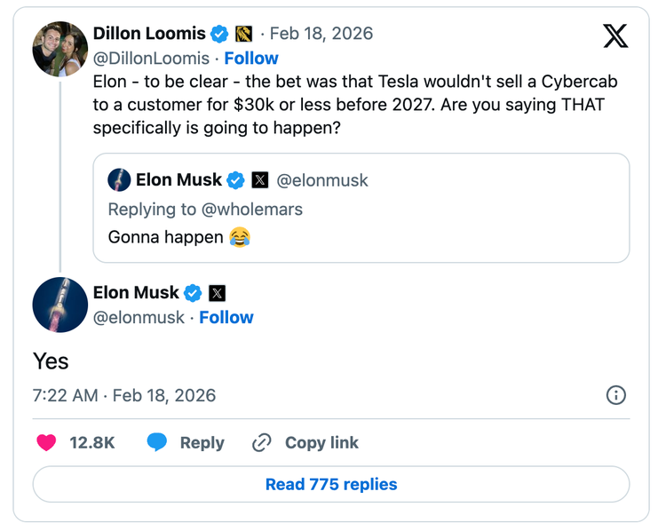 最有意思的是,这辆车下线还顺带逼着一位科技博主兑现赌约。知名视频博主MKBHD曾在2024年放话,如果特斯拉能在2027年前造出售价低于3万美元的 Cybercab(参数|询价),他就直播剃光头。现在车出来了,价格也卡在线上,马斯克还在社交媒体上回了句“会发生的”。