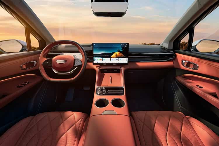 进入到驾驶舱,说实话,博越REV的中控布局很难让人一眼就记住,毕竟这种极简风格,还有副仪表+扶手箱组成的T型中控台已经很常见了。但要说差异嘛,车辆重新打造了拼色双服饰方向盘,而副仪表台上的大尺寸旋钮会让行车过程中的多媒体操作变得更方便直接,再搭配上多区域边框中的镀铬金属包围、座椅上的交错菱纹,这视觉档次与耐用性其实都照顾到了。