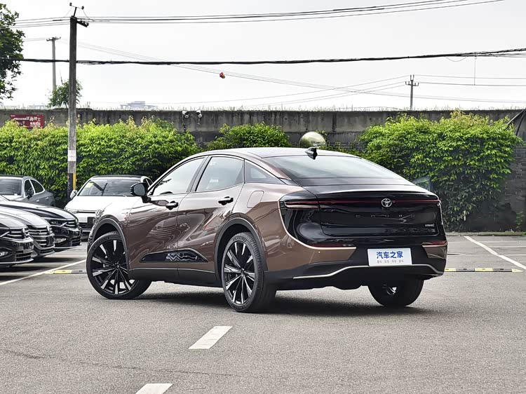 再来看车身侧面部分,身侧面是皇冠SportCross的精髓所在。它采用溜背式轿跑设计,车顶线条从A柱流畅延伸至C柱,配合1840mm的宽体车身和1540mm的低矮车高,营造出轿跑般的运动感。 腰线从前翼子板一直延伸至后车门,隆起的曲面设计增强了肌肉感,而侧裙的黑色点缀则提升了视觉层次。 车身尺寸为4980mm×1840mm×1540mm,轴距达2850mm,但短轴设计更注重驾驶灵活性而非空间最大化。 这种跨界造型既兼顾了SUV的通过性,又融入了轿跑的优雅,使其在城市道路中显得格外醒目。