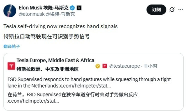 特斯拉自动驾驶可识别交警手势,马斯克发文确认功能落地