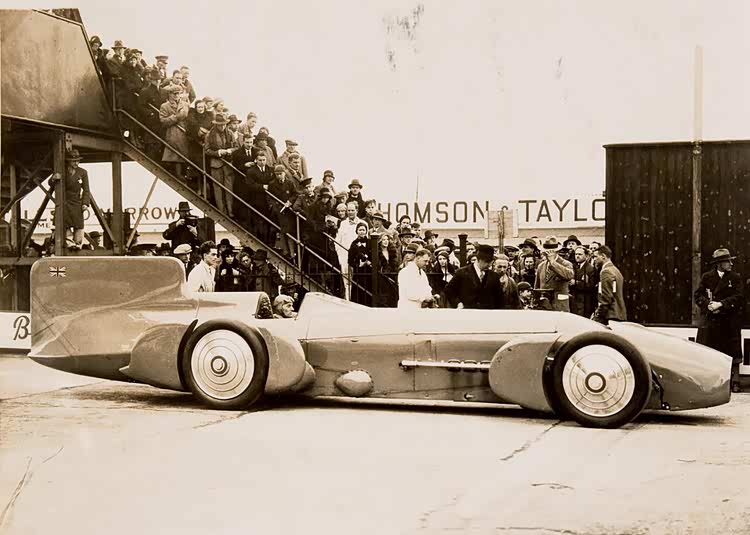 20世纪初,人类刚刚进入汽车时代,对破速度记录的理解还停留在直观的层面,那就是选择更大的发动机、更强的动力、更直的道路。早期的纪录由电动车和蒸汽车创造,随后内燃机迅速接管舞台。1906年,蒸汽动力的Stanley Rocket首次突破200km/h,到了一战前后,飞机发动机被安装进汽车车架中。