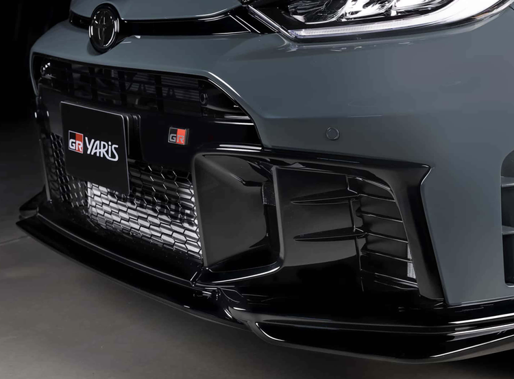 外观方面,丰田GR Yaris Morizo RR的车头进行了全面的升级,换上了黑色碳纤维材质的舱盖,并做出了高低起伏的姿态。单横幅式格栅连接着两侧粗犷的大灯,三颗矩阵式LED光源和L型日行灯也带来了更好的照明效果。换上了类似GT-R R35样式的硕大进气格栅,两侧还加入了硕大的矩形导流槽,黑色的装饰边框和内部的风刃设计,再配上双层黑色的前铲,不仅带来了更强的视觉冲击力,也能为制动系统和发动机舱提供了更好的冷却效果。车尾配备了赛车碳纤维尾翼,黑色的后包围配备了双边两出的金属排气筒,进一步提升了整车的运动气息。贯穿式尾灯也加入了熏黑的灯罩,内部融入了红色赤焰光带,辨识度很高。