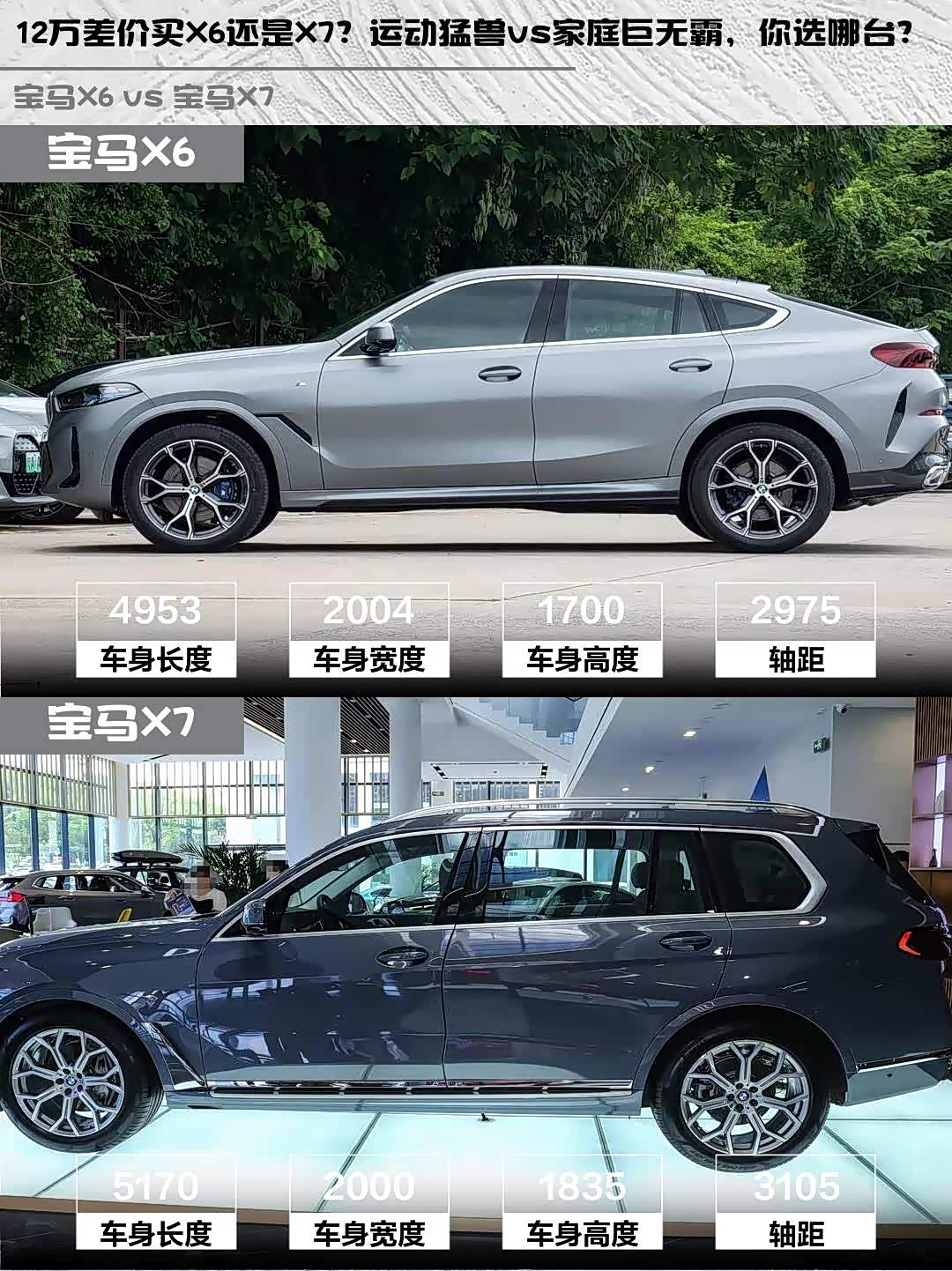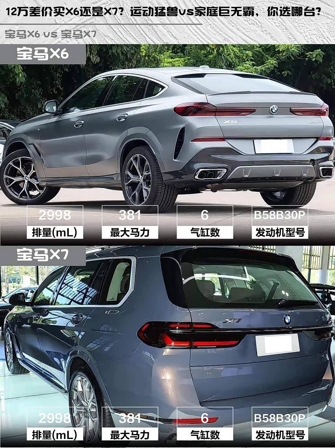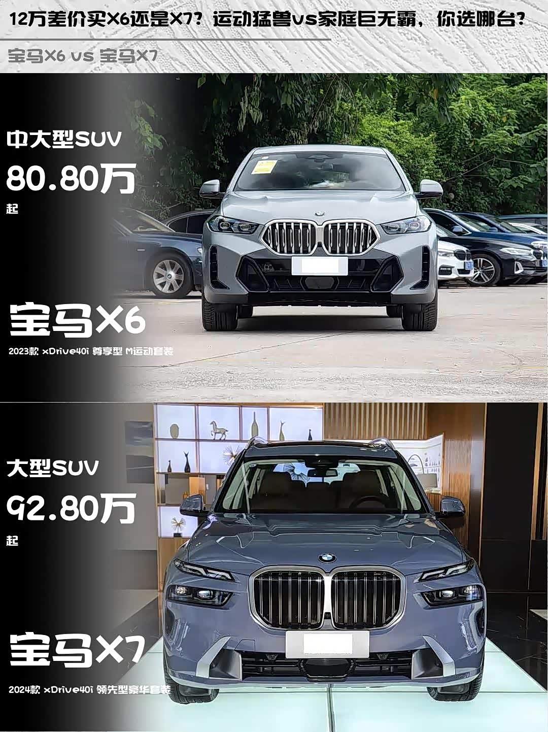 宝马X6(参数|询价)和X7这对兄弟该怎么选?今天深度对比2023款X6 xDrive40i尊享型M运动套装和2024款X7 xDrive40i领先型豪华套装,看完你就懂了!🔥