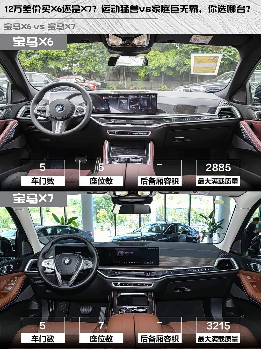 要个性要操控选X6!溜背造型+精准转向,开起来完全不像中大型SUV。需要商务接待或二胎家庭闭眼入X7,第三排真的能坐成年人,空气悬架过坑如履平地。