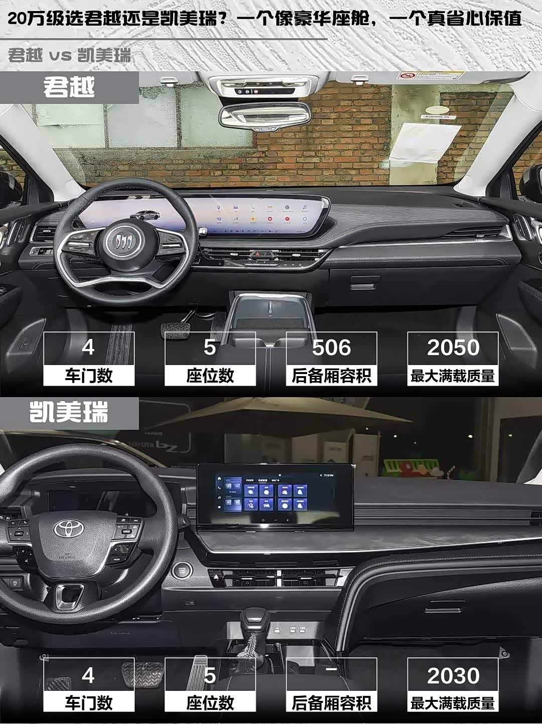 20万级选君越还是凯美瑞?一个像豪华座舱,一个真省心保值