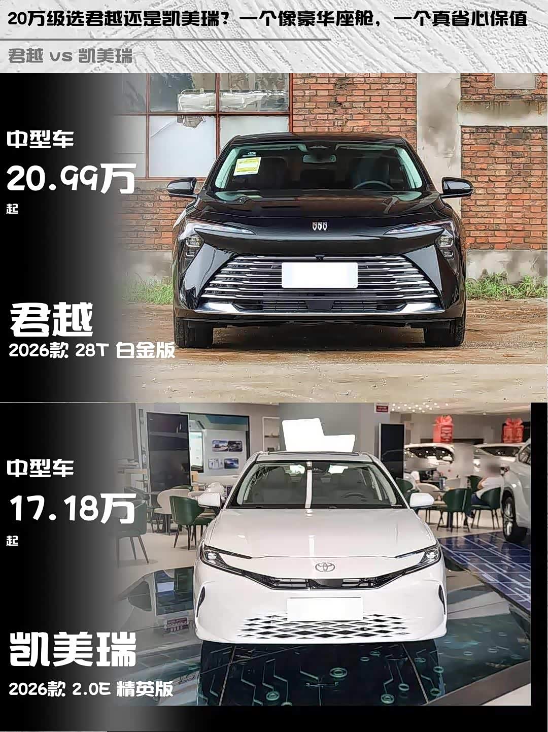 车家号·0浏览·2026-02-23 08:17 · 北京最近在选20万级中型车,纠结君越2026款28T白金版和 凯美瑞(参数|询价)2026款2.0E精英版的朋友看过来!深度对比两周后,这份真实体验请收好💡