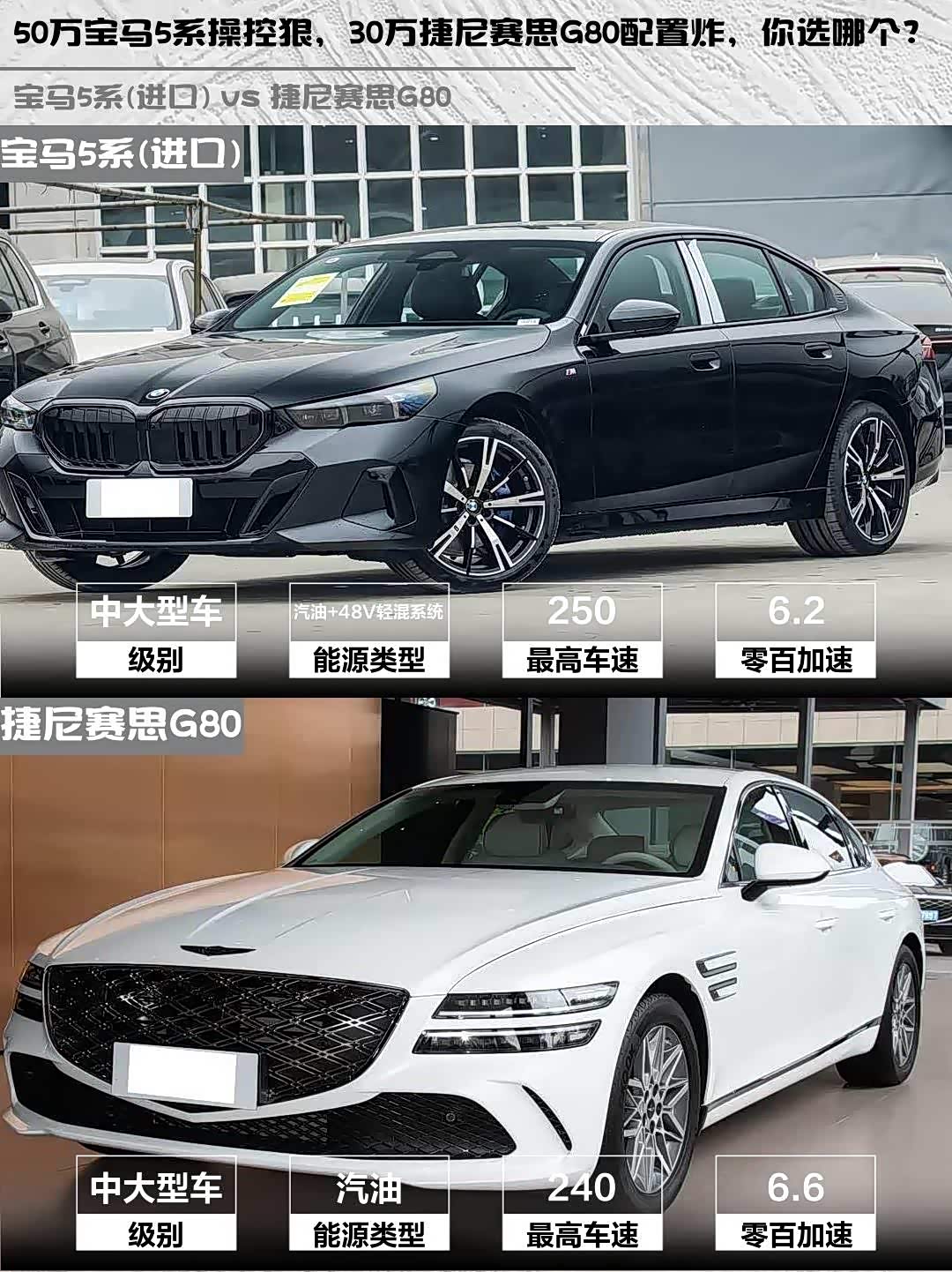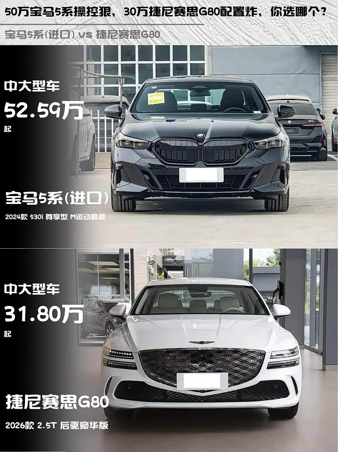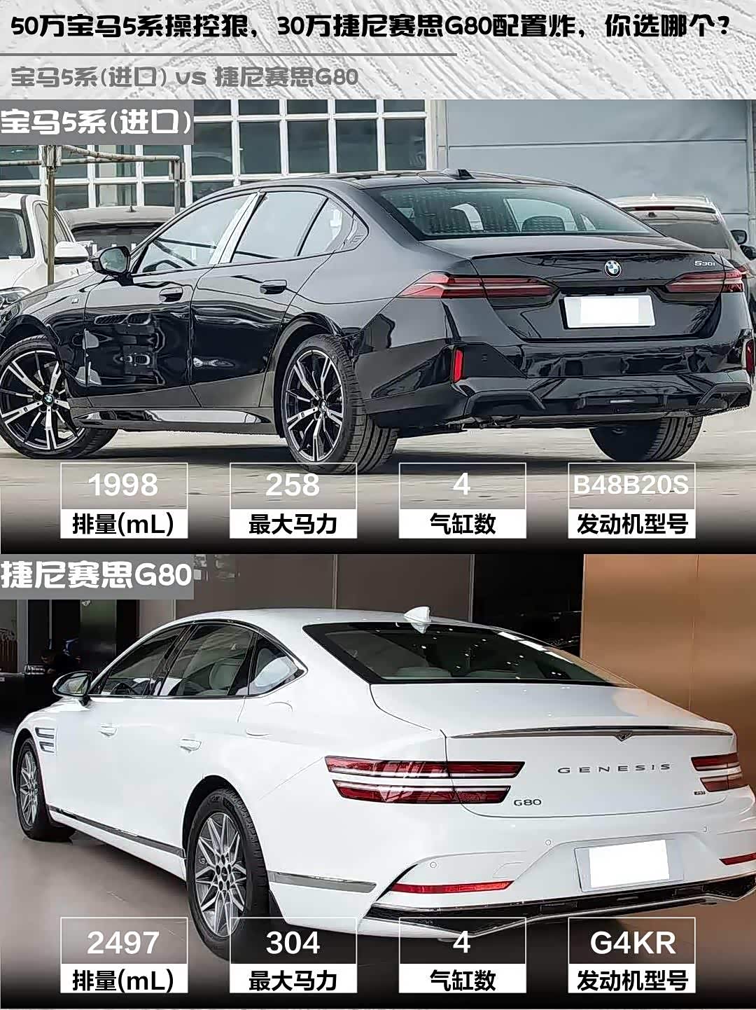 50万宝马5系操控狠,30万捷尼赛思G80配置炸,你选哪个?