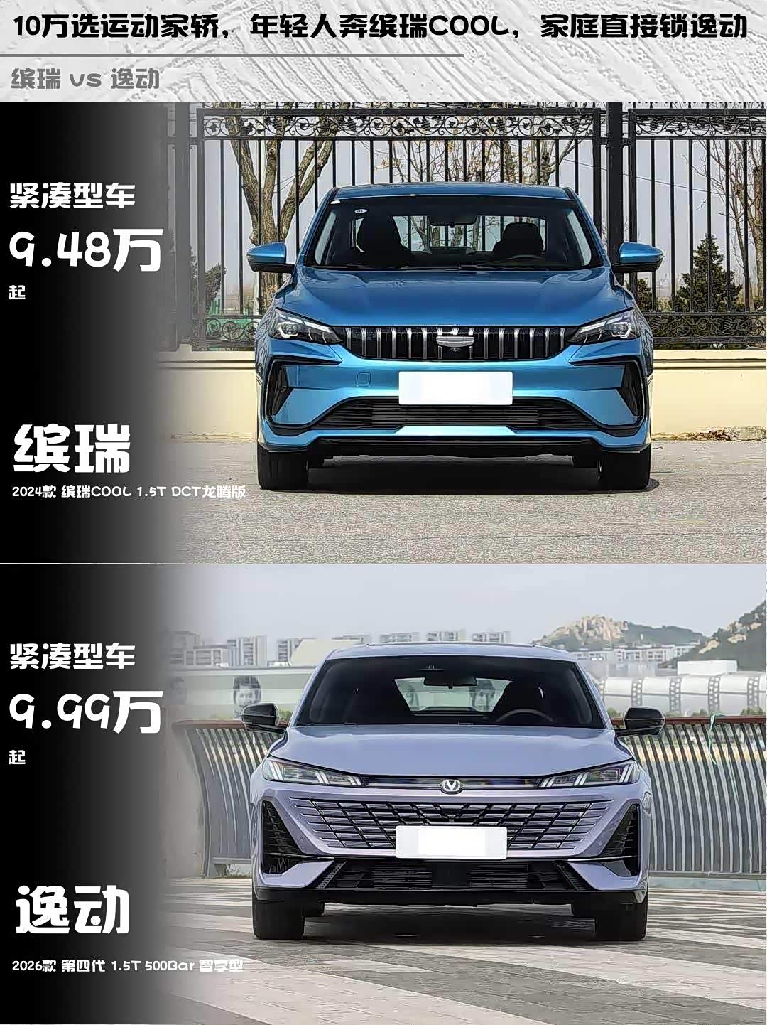 最近后台好多兄弟问10万预算买运动家轿,2024款缤瑞COOL 1.5T龙腾版和2026款逸动1.5T智享型到底怎么选?作为开过这两台车的"老司机",必须来波硬核对比!💪