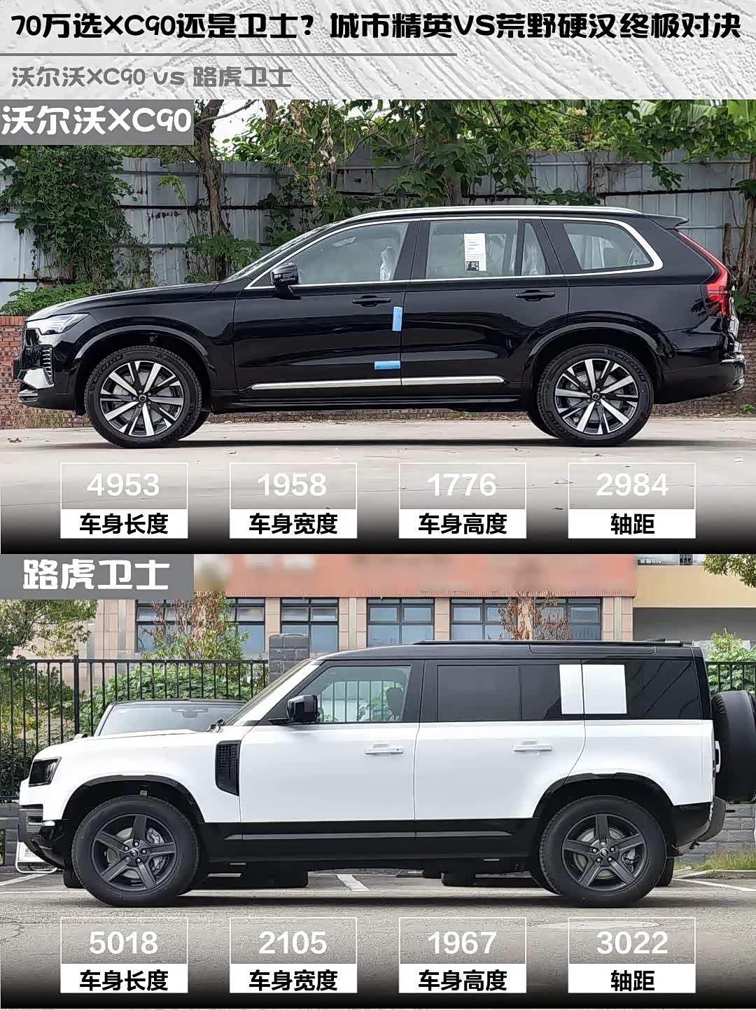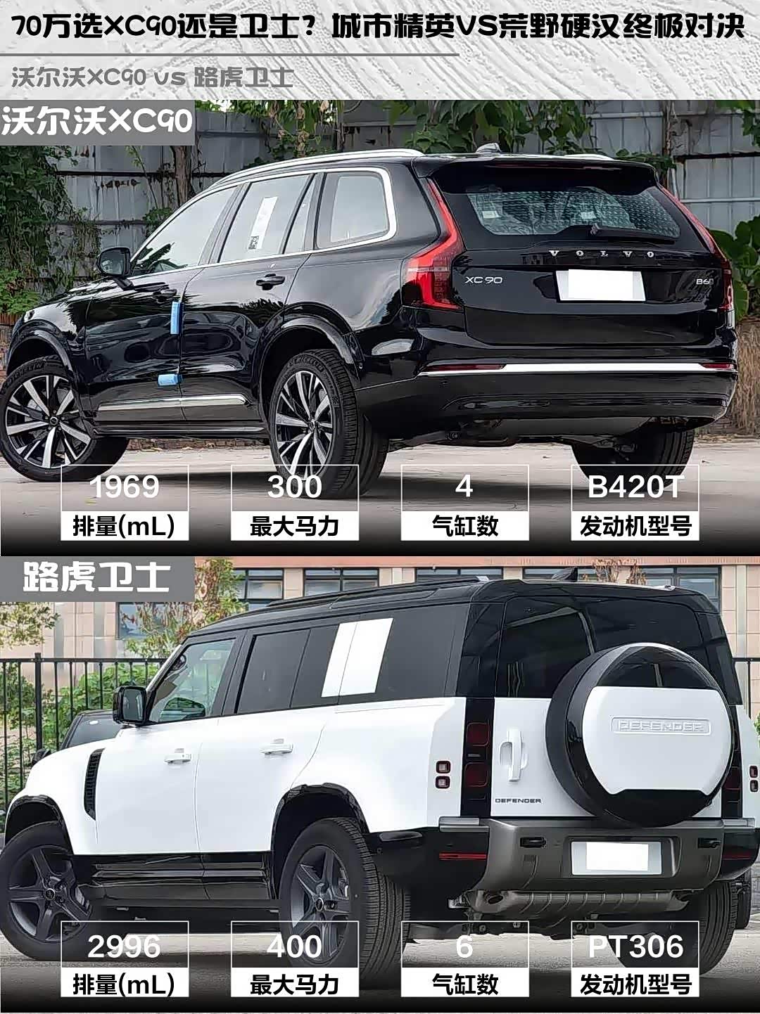 北欧绅士遇上英伦硬汉, 沃尔沃XC90(参数|询价)和路虎卫士这对中大型SUV界的反差萌CP,到底谁才是你的本命座驾?今天就从真实车主视角,带大家沉浸式对比这两台70万级选手的生存法则🔥