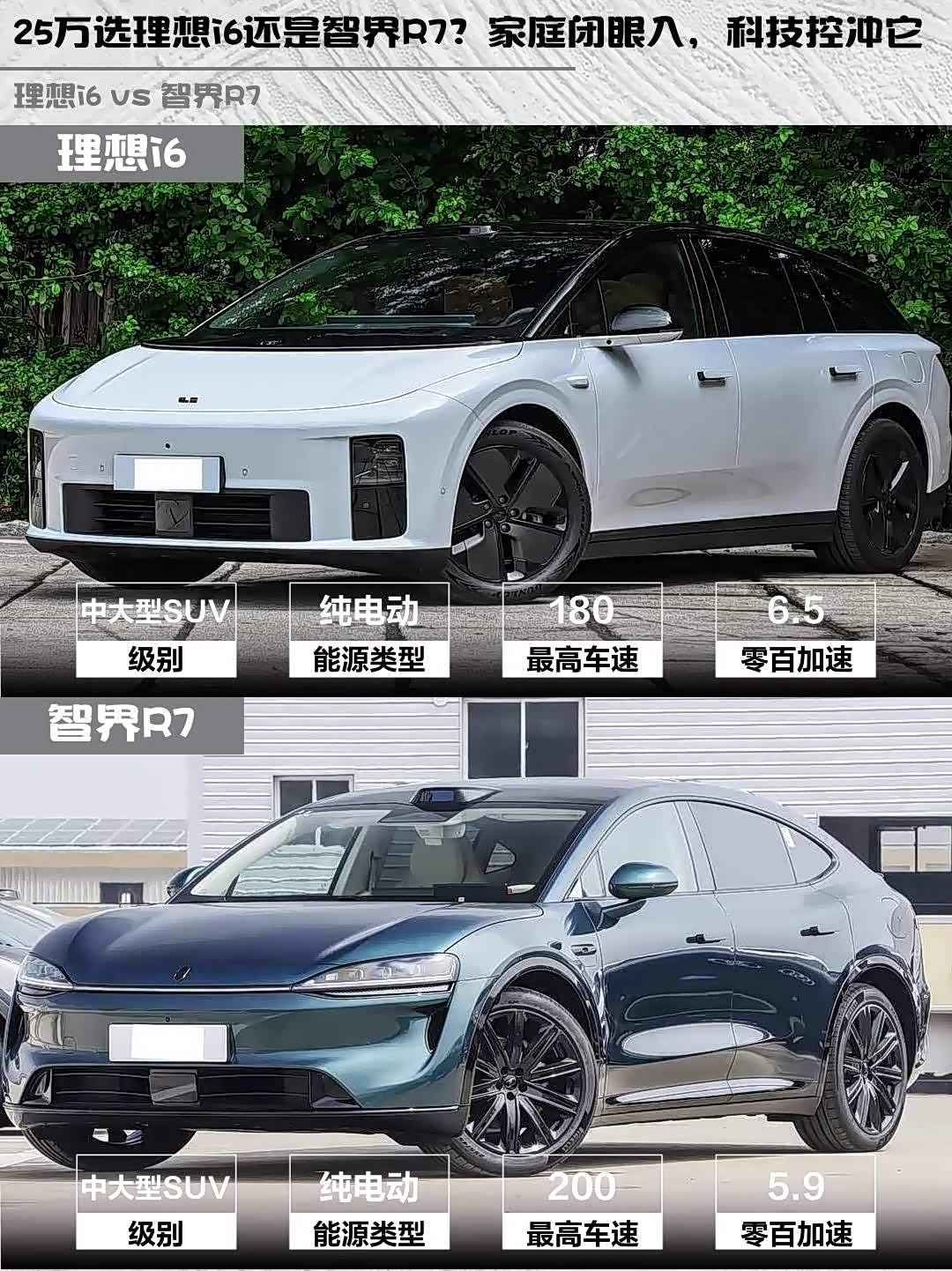 最近后台好多人在问 理想i6(参数|询价)和智界R7怎么选,作为深度体验过两台车的车主,今天就从实际使用角度聊聊这两台25万级纯电SUV的差异点!🔍