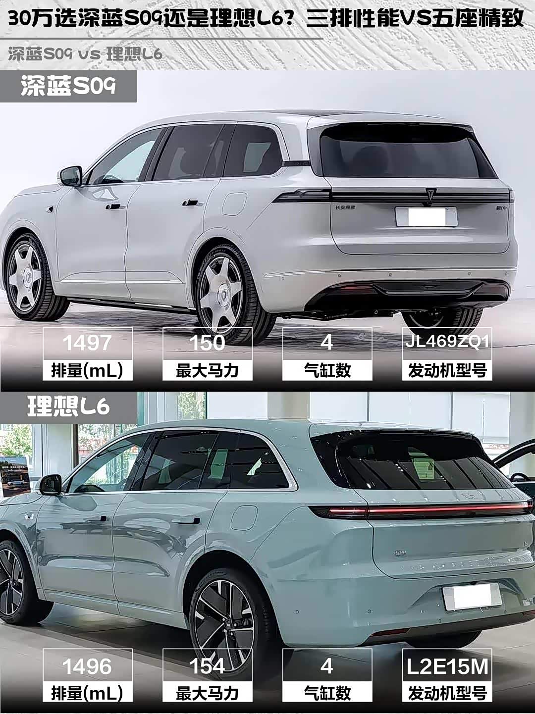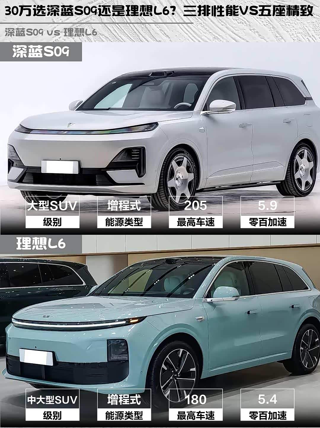 30万选深蓝S09还是理想L6?三排性能VS五座精致