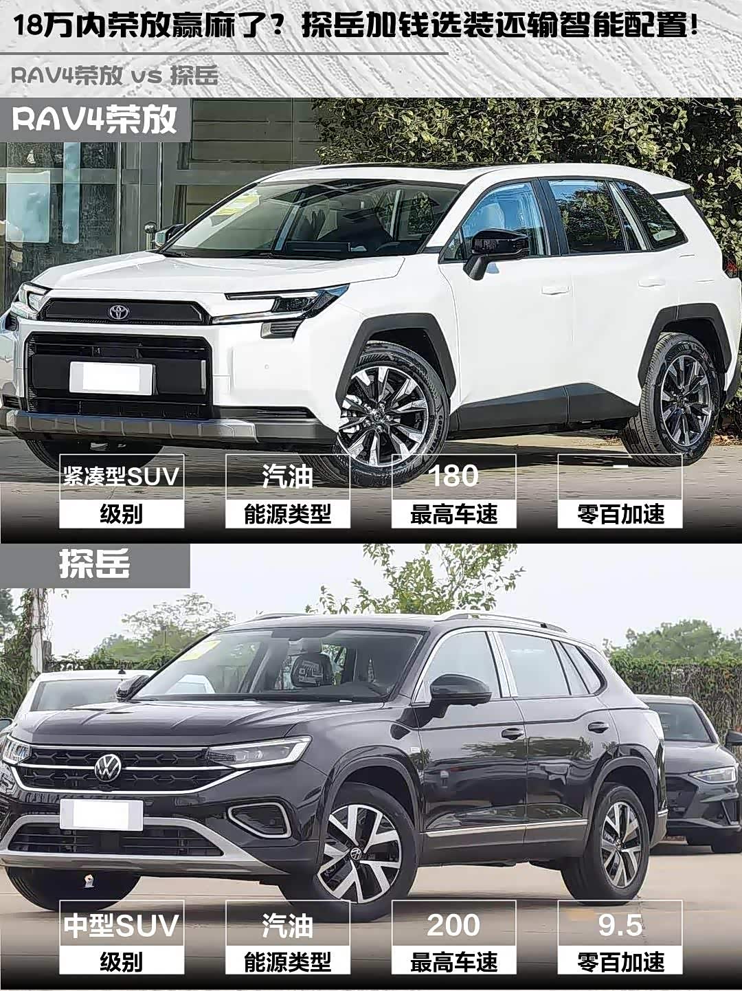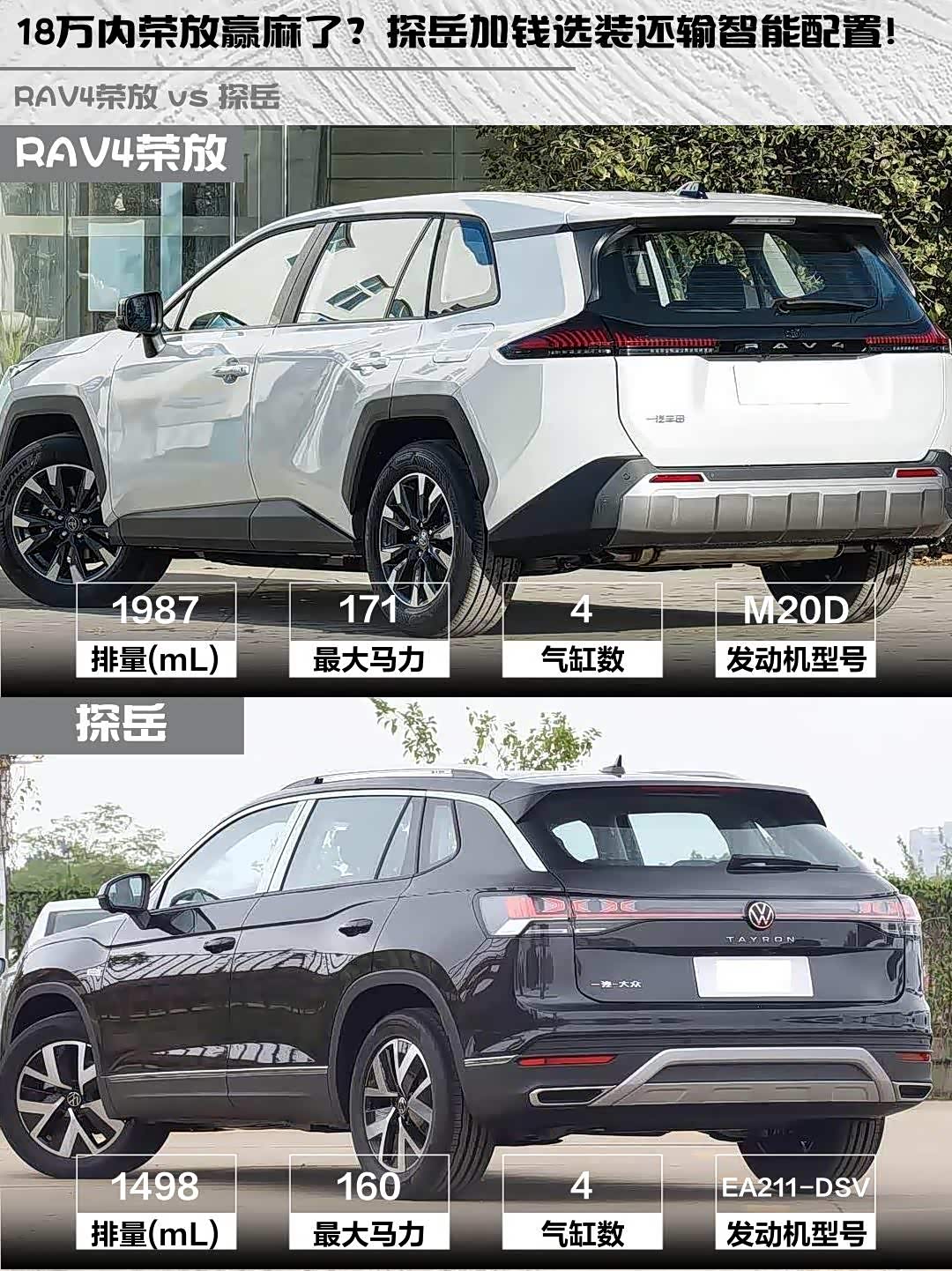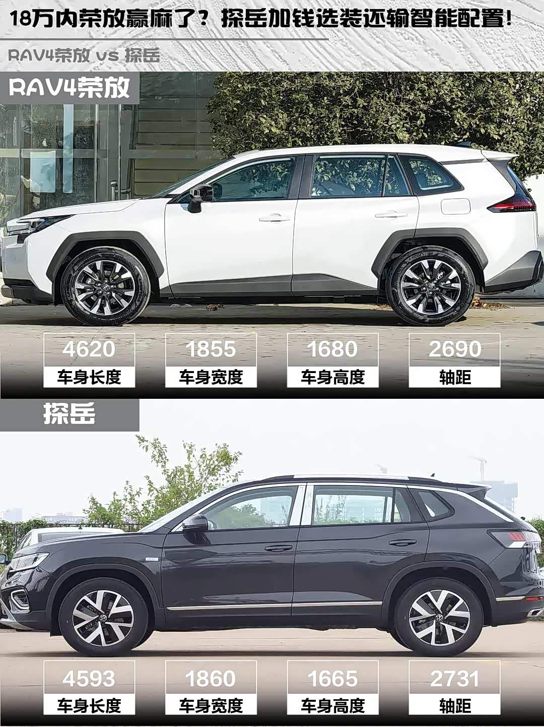 最近在纠结 RAV4荣放(参数|询价)和探岳这两款热门SUV的兄弟举个手🙋♂️!作为开过两款车的"老司机",今天就从真实体验出发,给大家来个硬核对比~