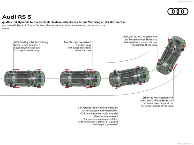 全系一代RS5确实有着强劲的动力,quattro四驱系统也配备了新的中央差速器,能减轻弯道推头现象;而动态扭矩控制系统,也能让车身的响应更加快。