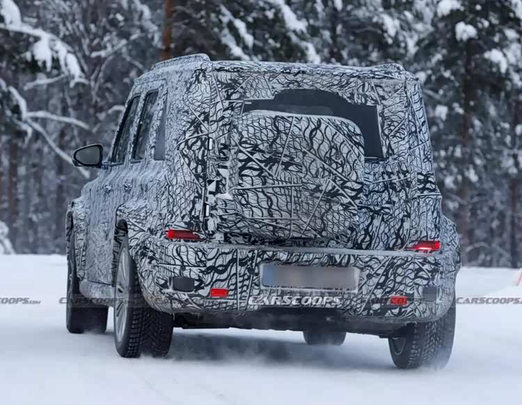 先看外观,虽然裹着厚厚的伪装,但那方方正正的轮廓、圆形大灯、侧开尾门,一眼就能认出这是G家的血脉。前脸是纯电专属的封闭式格栅,半圆LED日行灯很有辨识度。车尾那个“小书包”不是备胎,大概率是用来放充电线的。尺寸上,据透露会比现款G级缩小约15%,车长预计在4.4-4.7米之间。这身材城市通勤刚好,再也不用担心大G停不进窄车位了。
