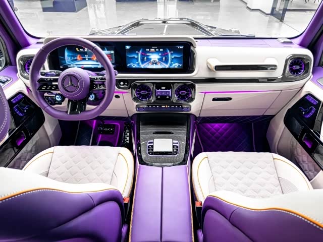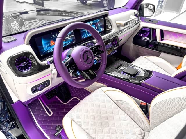 - 25款原装巴博斯G800,全新未上牌,外观磨砂黑和亮黑双拼,内饰白紫双拼方格纹内饰,国内唯一在售现车‼️全球唯一配色,巴博斯宽体宽体之星包围,瀑布式中网,巴博斯车标,碳纤维(前唇中网框,侧风刀,碳纤维机盖,顶灯,尾翼,备胎盖),暗夜灯组八件套,24寸巴博斯大饼轮毂,巴博斯性能刹车卡钳,双边四出巴博斯熏黑排气,熏黑字标,四门无钥匙进入等,内饰选配:Nappa真皮方格纹内饰,真皮满天星 星空顶,全车内饰按键紫色点缀,巴博斯门锁柱,巴博斯发光迎宾踏板,巴博斯刹车油门踏板,多轮廓动态座椅,通风,加热,记忆,按摩,橙色安全带,柏林之声音响,发光涡轮出风口,碳纤维内饰包,新款蜻蜓方向盘+SC组件+方向盘加热,冷热水杯架,无线充电,触控板,后排座椅加热,触摸屏,MBUX系统,64色氛围灯,星空顶,电磁阻尼悬挂等