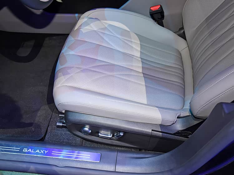 空间是它很大的底气。车长5018毫米,轴距2928毫米,后排宽敞,座椅填充厚实柔软,坐感接近电车。无框门配双层隔音玻璃,静谧性不错,再加上可软硬调节的悬架,舒适性是明显偏家用取向。开出去尺寸大气,停在小区楼下也有点中大型车该有的体面。