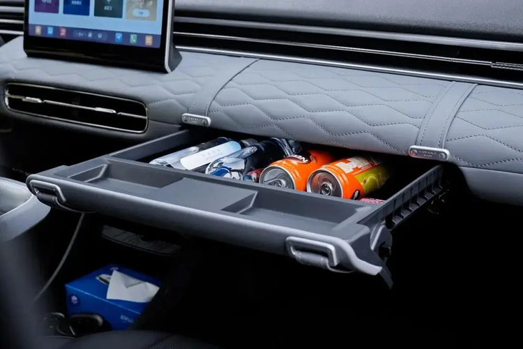 坐进车里,会发现设计师绝对是个“细节控”。副驾驶那个手套箱被做成了抽屉式,里面还分了格,打开那一瞬间,治愈强迫症。化妆镜还贴心地配了LED柔光灯,下班急着去约会,还能在车里补个妆。