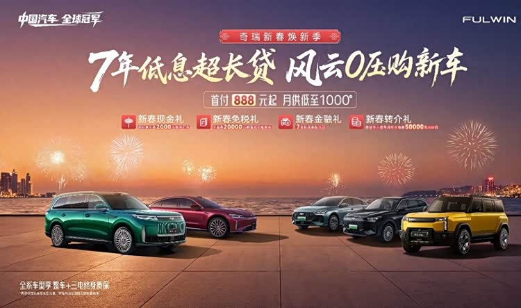 正月初七,春意渐浓。在这个寓意着生机与希望的日子里,奇瑞汽车正式开启“奇瑞新春焕新季”,其中作为奇瑞新能源战略的核心引擎,风云品牌推出“7年低息超长贷 风云0压购新车”的购车政策,为用户带来触手可及的购车实惠,让更多用户在新春之际轻松拥有全球品质的新能源座驾,开启新一年的美好出行。