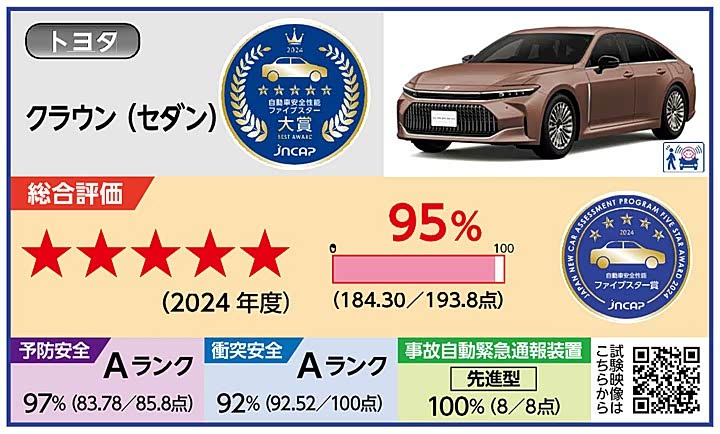 对此 JNCAP 也提到,过往会从获得 5 星评级的车辆中选出总分最高者其给予「5 星大赏」殊荣,但在举行颁奖典礼时,所有成绩结果通常都已全部公开,因此「5 星大赏」所受到的关注度并未显著提升;JNCAP 表示其自身宗旨在于提升一般消费者对安全性的关心与理解,并促进高安全性能汽车的普及,因此,2025 年度为提升「5 星大赏」的价值与关注度,并进一步推动安全车辆的普及,届时所公布各车型的评测结果中,将以更简洁易懂的方式呈现,而获得「5 星大赏」殊荣的车款预计会在 5 月时来公布。