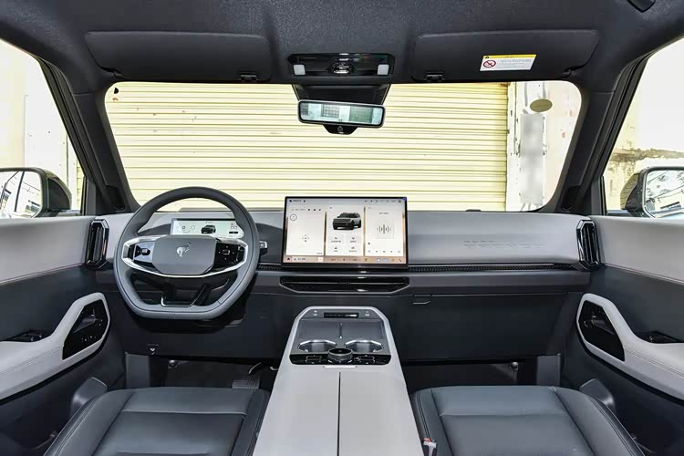 拉开车门,我选的这台是月壤灰的内饰配色,看着干净,也挺耐脏。整个中控台、门板上,手能摸到的地方基本都是软质材料包裹,缝线走得很规整,做工挺扎实。我原本以为这种越野车,内饰就是粗犷实用派,但智趣烈马确实给了我一个惊喜,质感这块拿捏得不错。