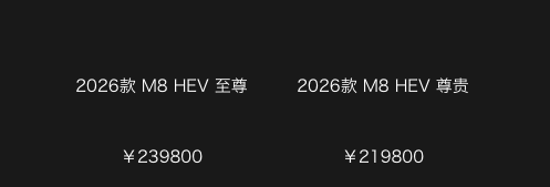 2月23日,我们从广汽传祺官方获悉,2026款传祺M8 HEV现已正式上市,推出尊贵、至尊共两款车型配置,官方指导价21.98万-23.98万元,政企双补价19.78万元起。作为改款车型,2026款传祺M8的功能配置有所调整,购买门槛相比2025款车型有一定幅度的下探。