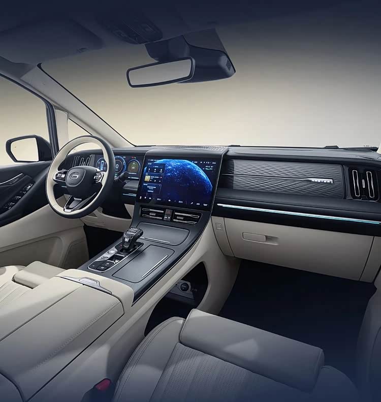 2026款传祺M8 HEV仪表台的设计排布也没有明显改动痕迹,搭载12.3英寸液晶仪表与14.6英寸中控屏,车机系统具备在线导航(GPS+北斗双模)、四区语音识别等功能,并由高通骁龙8155芯片提供支持。另外,2026款传祺M8 HEV全系采用2+2+3式座椅布局。