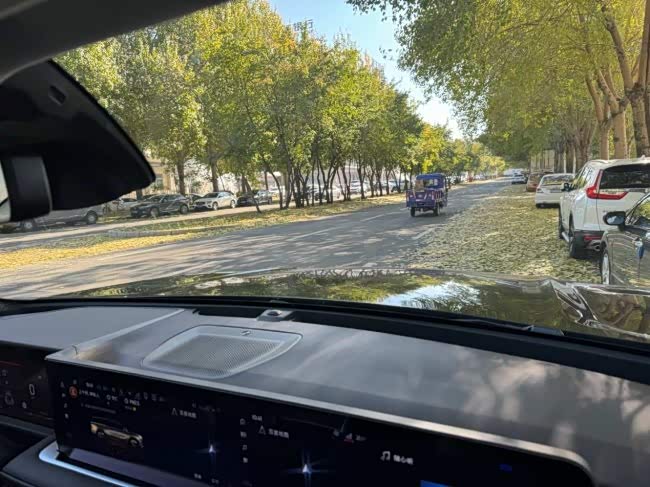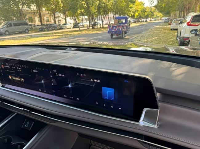 打开车门,最先注意到的是27英寸的大屏幕,可以连屏,也可以分屏,根据需求选择就可以了,4K,清晰度高,平时触屏操作也是很流畅的,最近又升级了百度地图,红绿灯可以读秒了,可以更好的掌握红绿灯起步的时间了。多功能方向盘,手感一直很好,转动起来,不轻不重,对于一辆中型SUV,我觉得蛮灵活的