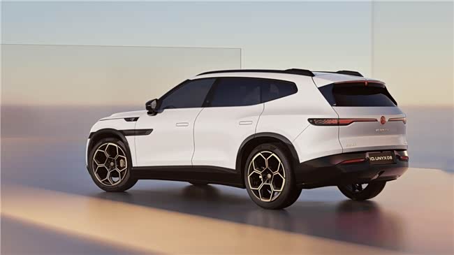 车身造型是车型设计的核心载体,直接决定用户对产品的第一印象,与众 08 以全尺寸纯电 SUV 的产品定位为基底,深度融合大众品牌核心设计原则与东方美学的舒展、对称特质,打造出兼具力量感与高端感的旗舰造型。UNYX 08 配备 1.5 米超长前机舱盖,以流畅曲面线条勾勒出饱满自信的车头轮廓,弱化全尺寸车型的厚重感,凸显纯电旗舰的高端质感;车头科技光带横向延伸,自然串联前脸与车身侧面,让整车视觉更具连贯性与整体性。
