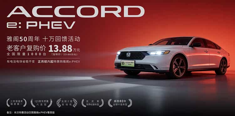 春节假期尚未结束,广汽本田便推出了新一轮价格营销动作。2月22日,广汽本田官方宣布,为庆祝 雅阁(参数|询价)50周年,老客户复购雅阁e:PHEV直降10万元,仅需13.88万元。