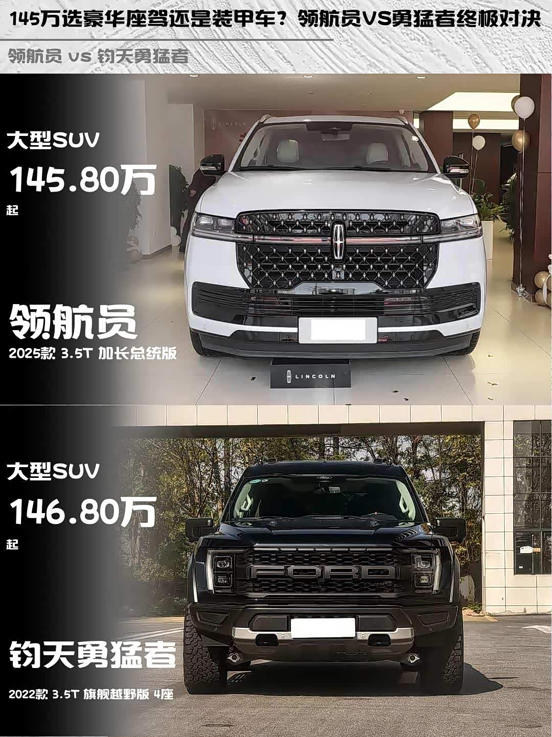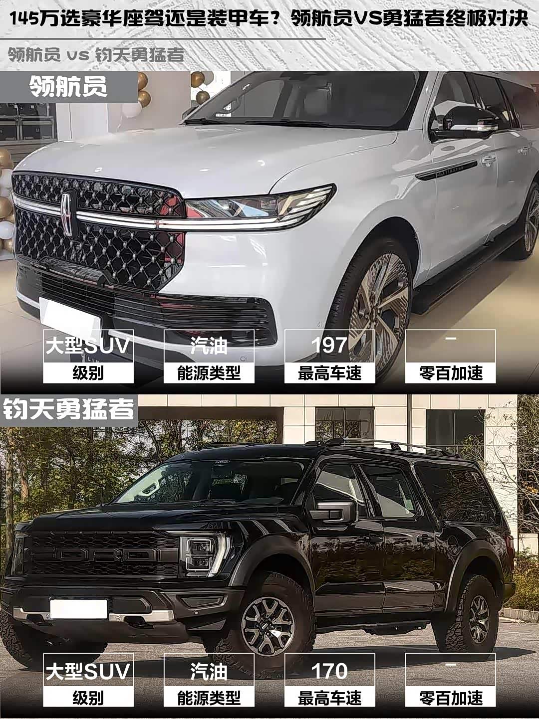 要极致豪华选领航员:145.8万买总统版专属内饰+超跑级加速;硬核玩家选勇猛者:146.8万获得房车级空间+猛禽同款越野基因。偷偷说,领航员回头率真的高,但勇猛者能进京这点对某些大佬可能是刚需...