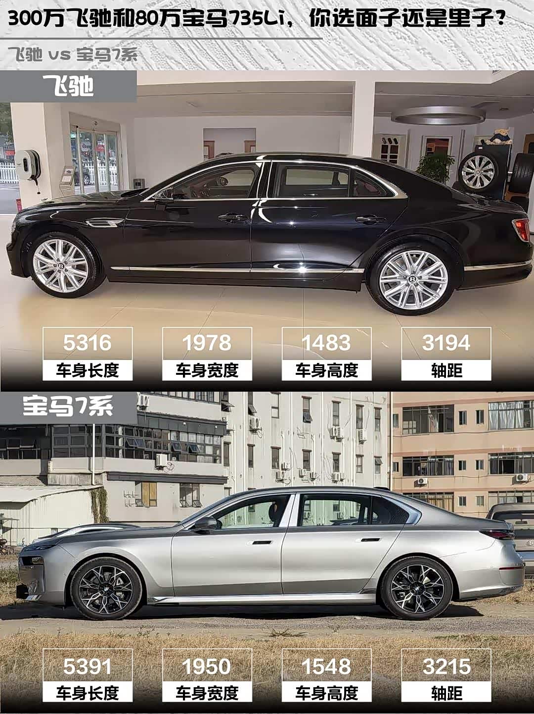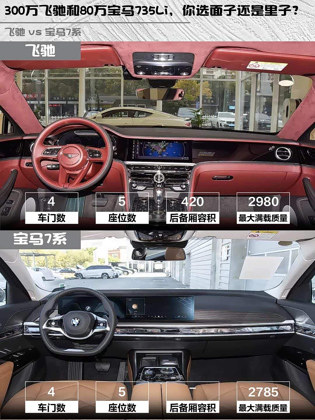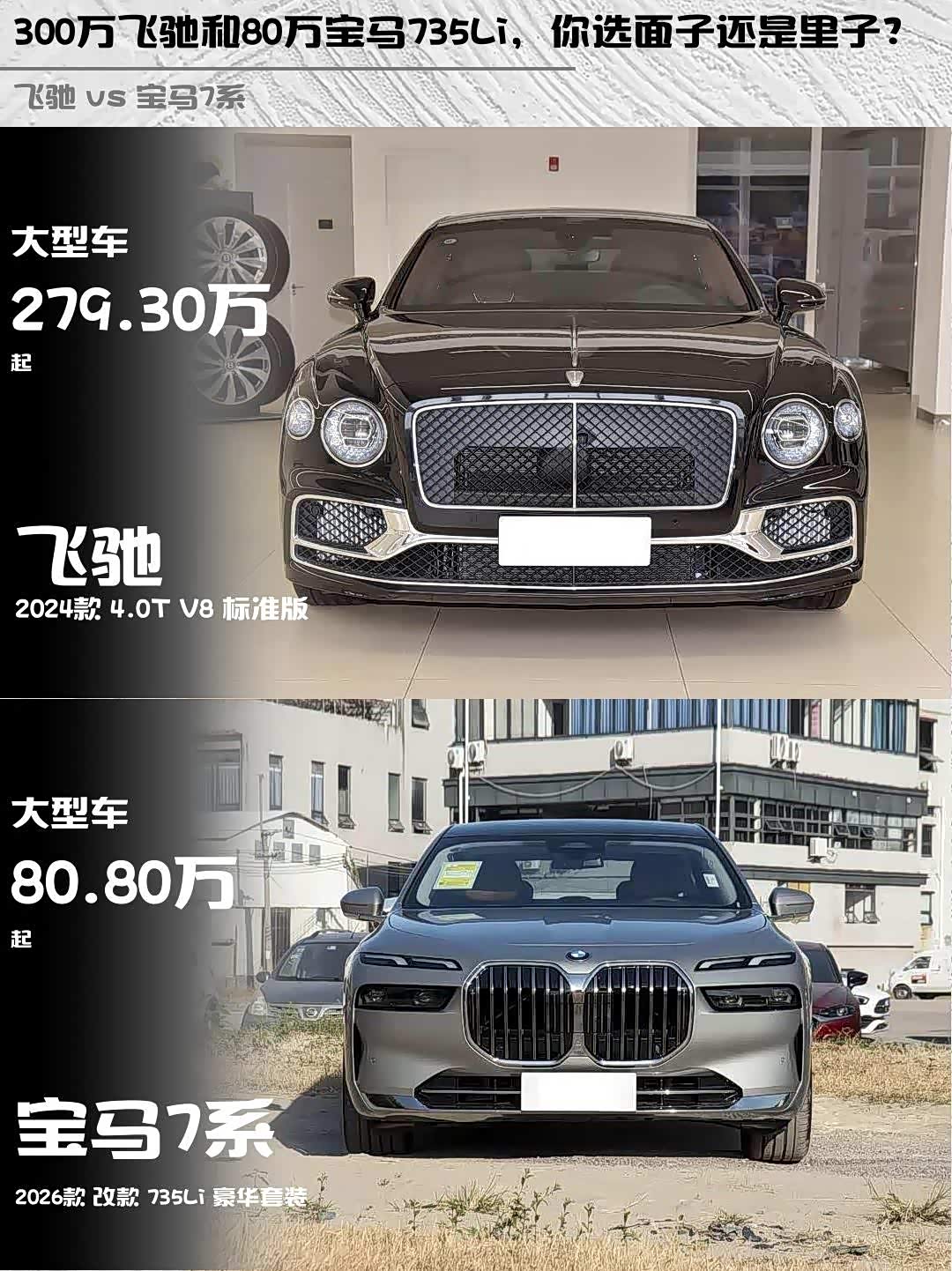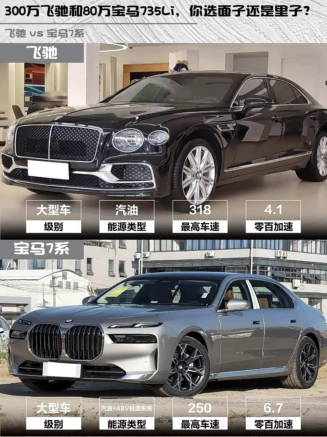 宾利飞驰(参数|询价)2024款 4.0T V8标准版 vs 宝马735Li豪华套装,300万和80万的D级车差距在哪?🤔