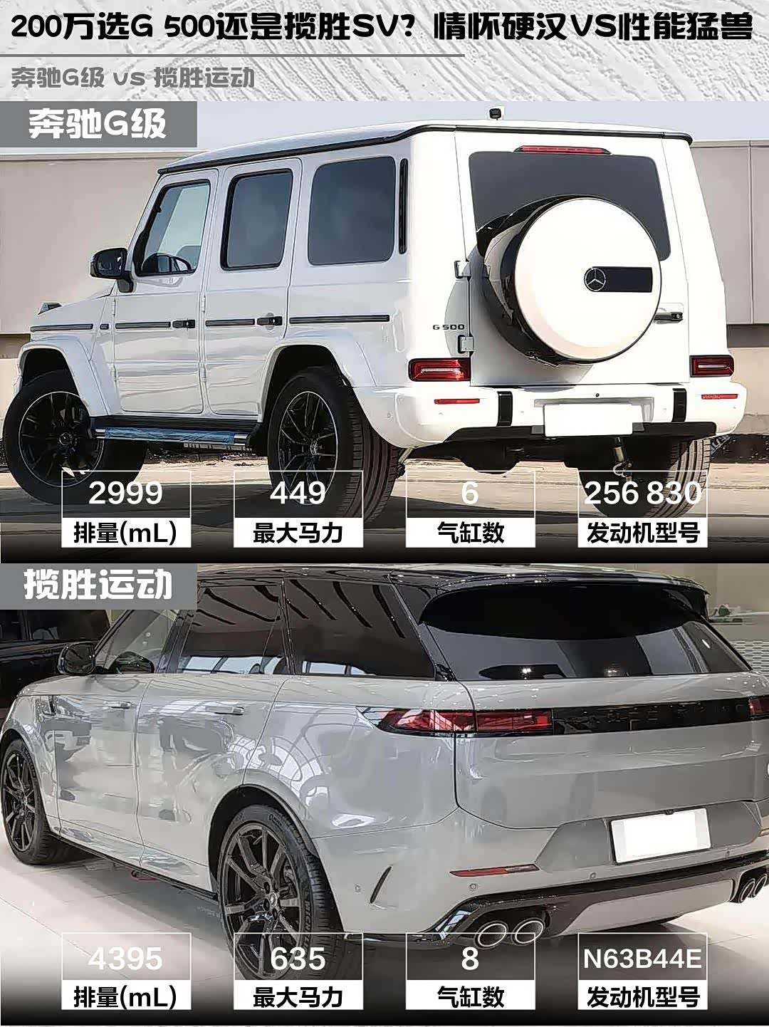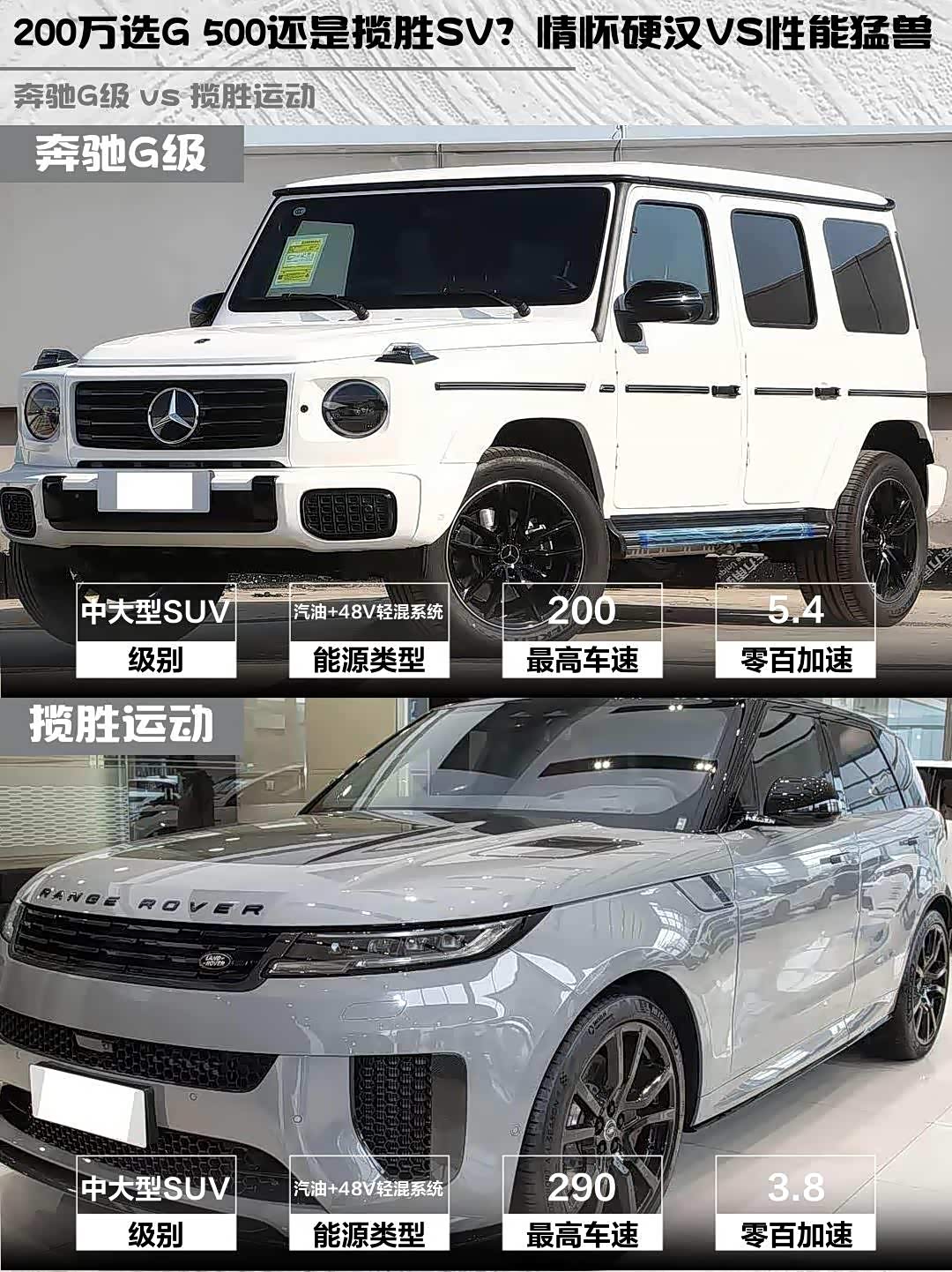 方盒子VS圆润绅士!200万级硬汉对决:奔驰G 500 vs 揽胜运动(参数|询价)SV谁更香?🔥