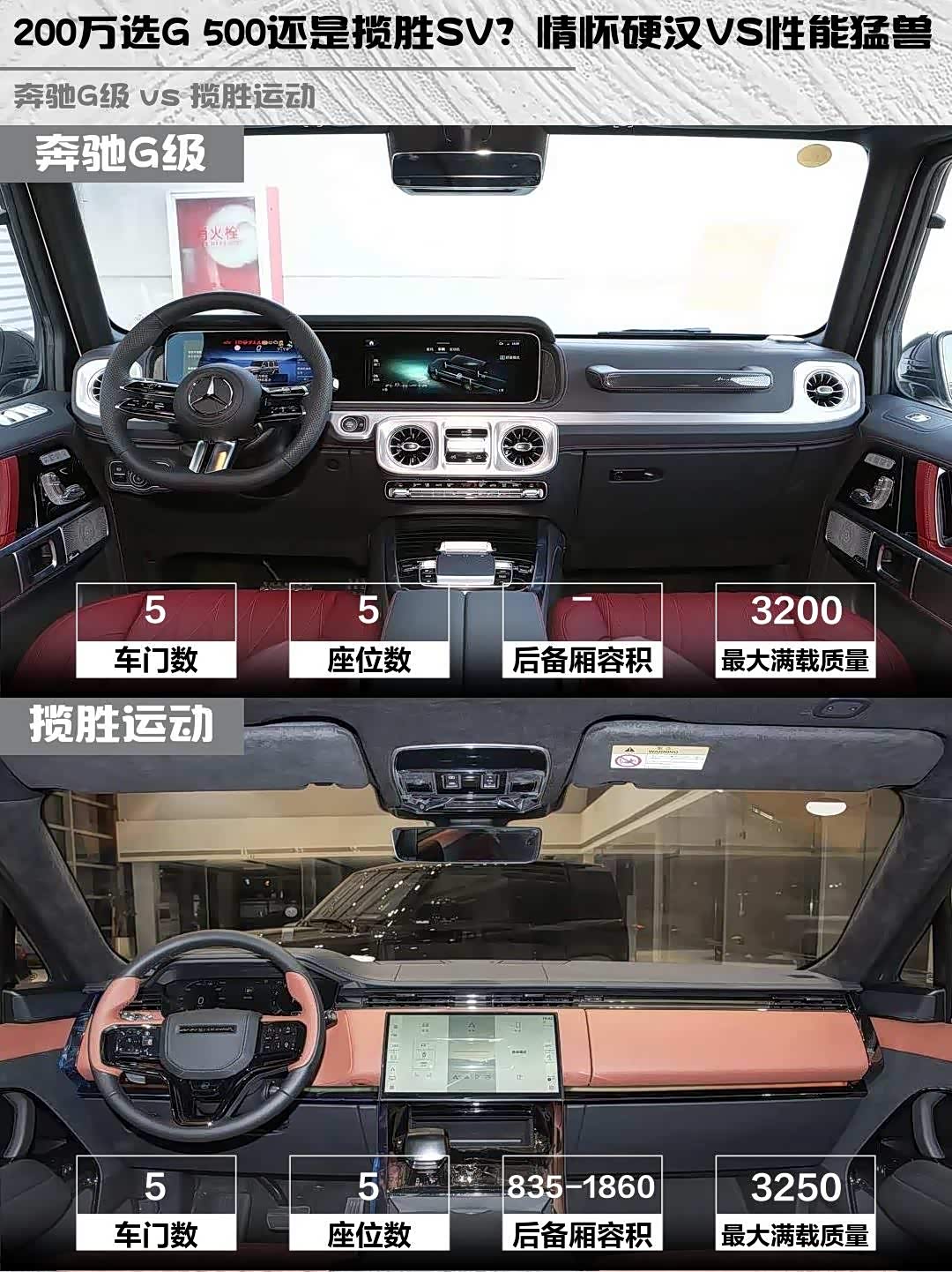 最后说句大实话:要纯粹越野血统选G 500,要公路暴徒+英伦优雅选揽胜运动SV。毕竟"方盒子里装的是情怀,圆润车身藏的是野心",你们说呢?