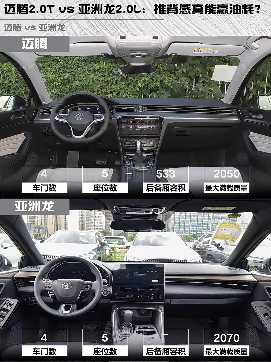 商务接待/高速狂魔选迈腾,2.0T动力储备和德系质感绝对值回票价;日常通勤/省心至上选亚洲龙,丰田的混动信仰+低故障率是真香。话说你们会更看重动力操控还是省油耐用?