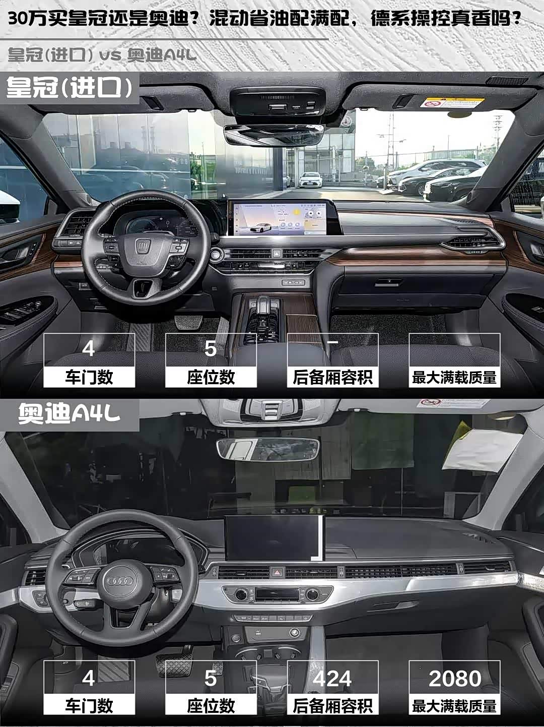 • 家庭用户:皇冠后排更舒适,奥迪后备厢更实用