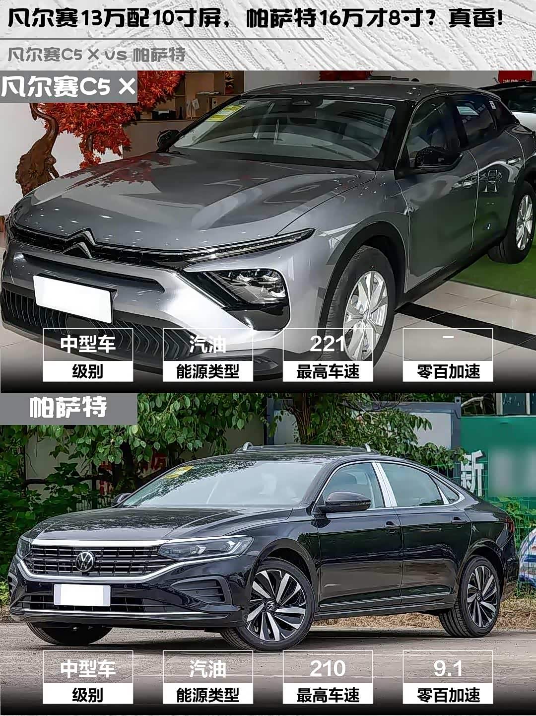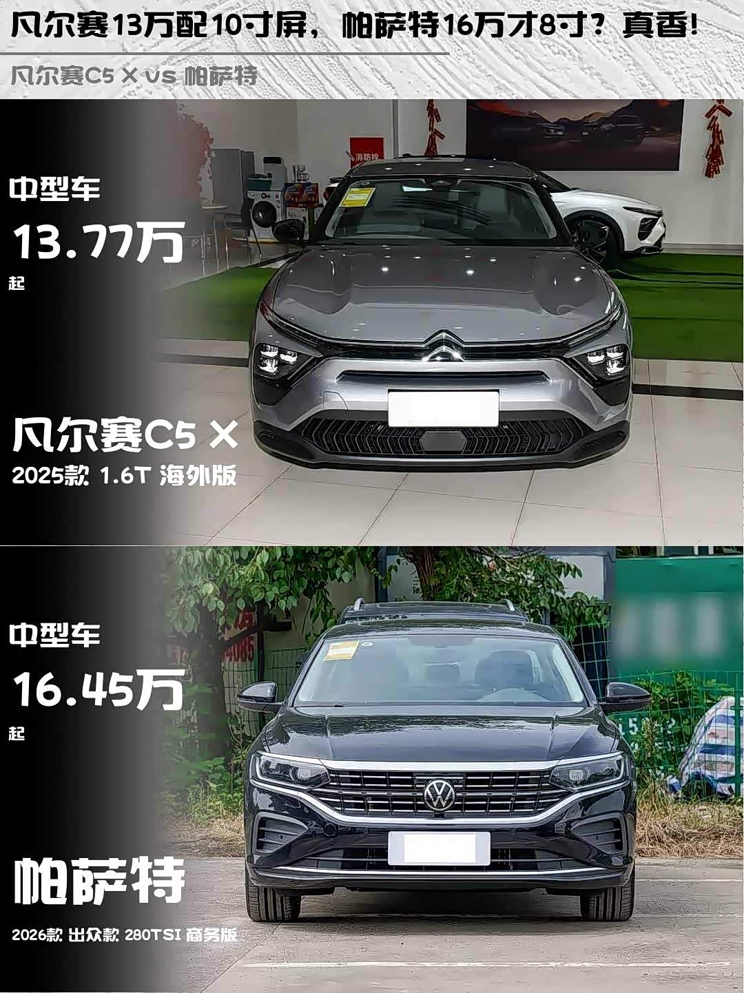 最近后台好多兄弟在问: 凡尔赛C5 X(参数|询价) 2025款海外版和帕萨特2026款商务版怎么选?今天直接上干货对比!🚗💨