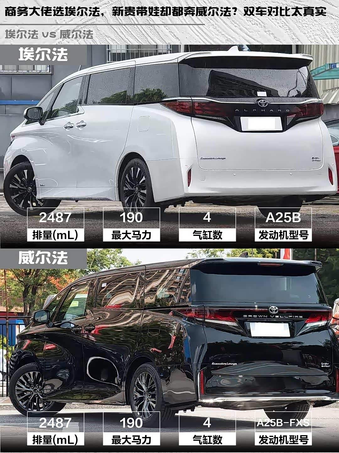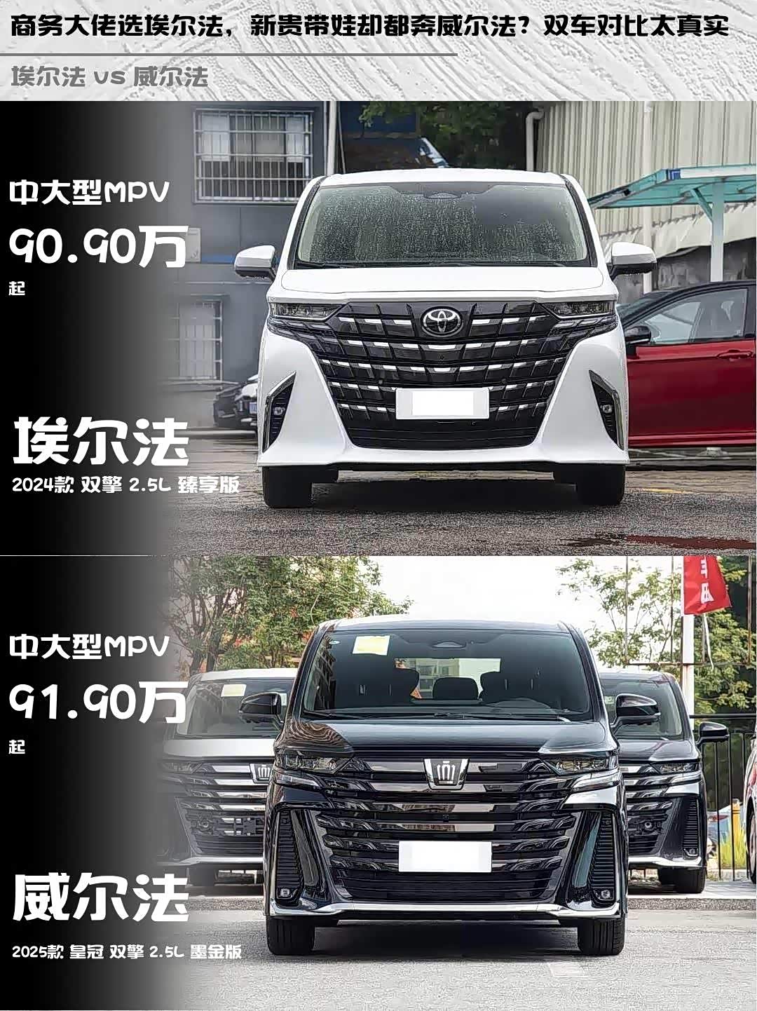 ▪️性价比党慎重:两车落地都要百万级,威尔法还比埃尔法贵1万(指导价91.9万vs90.9万)