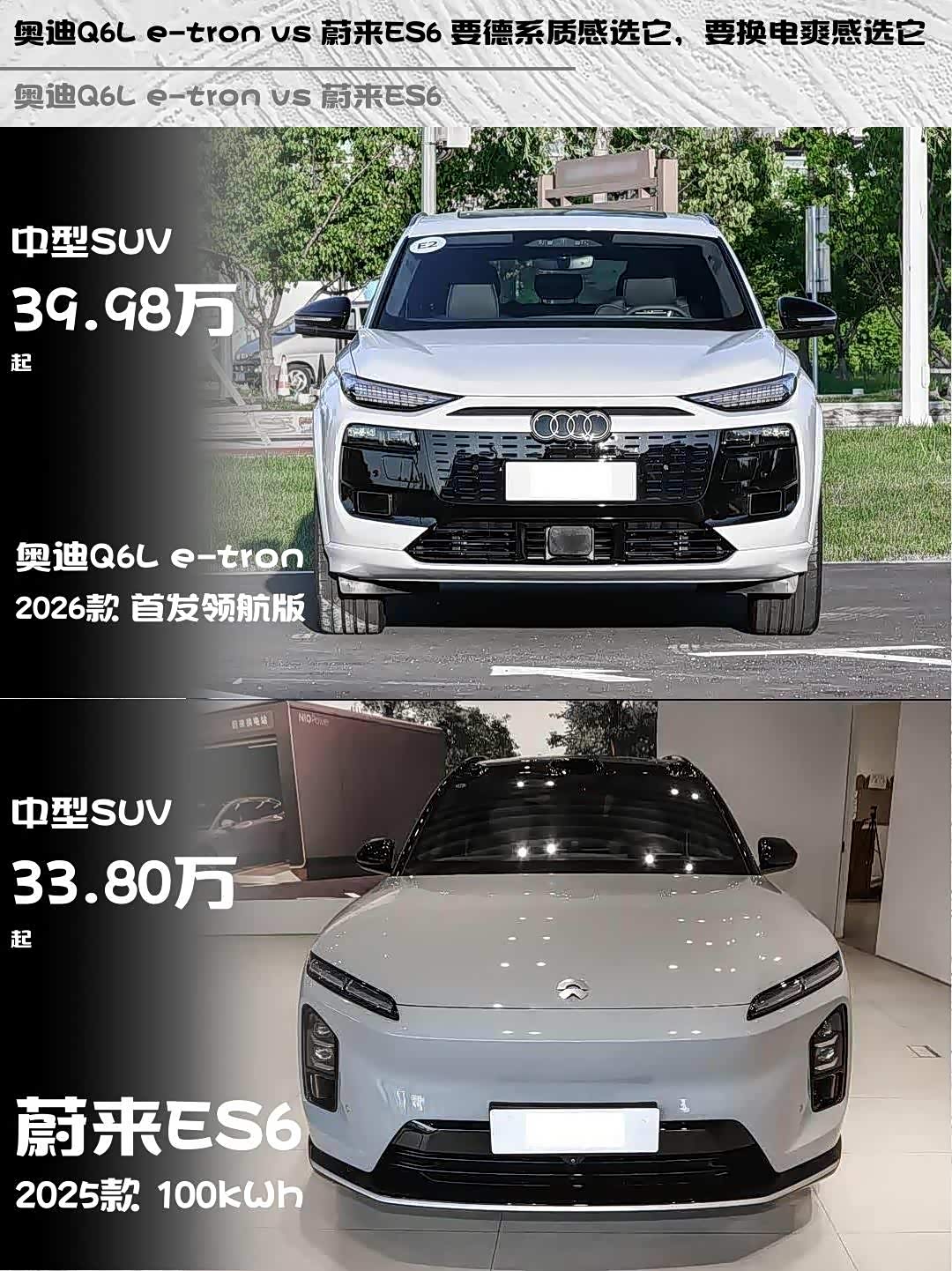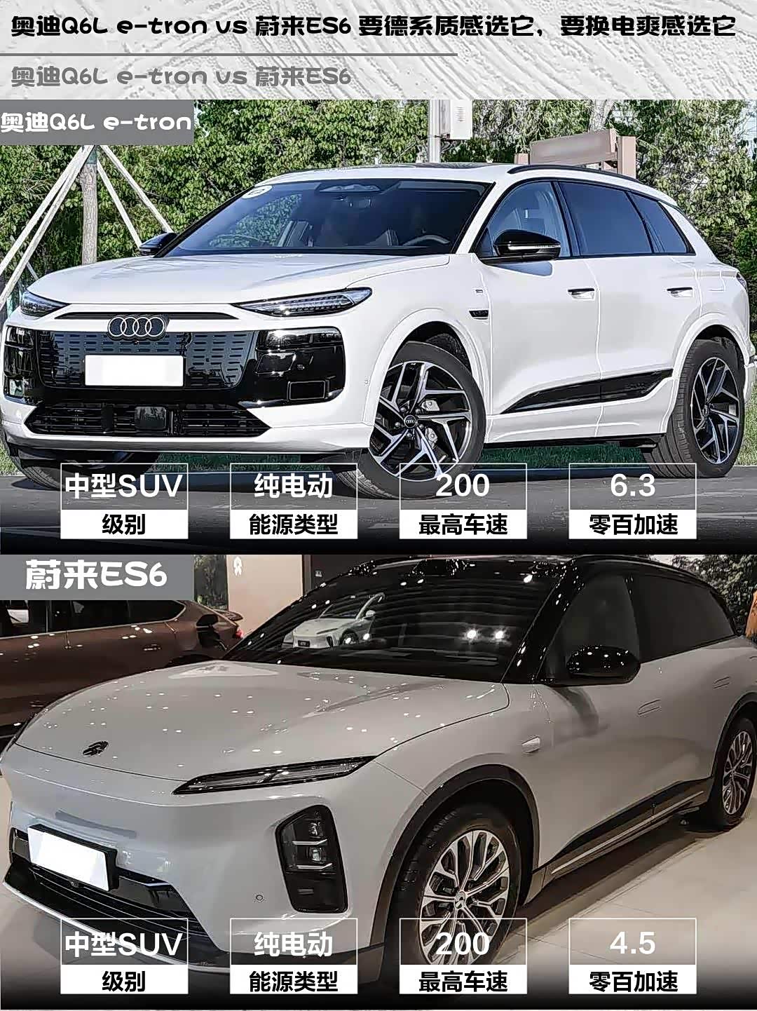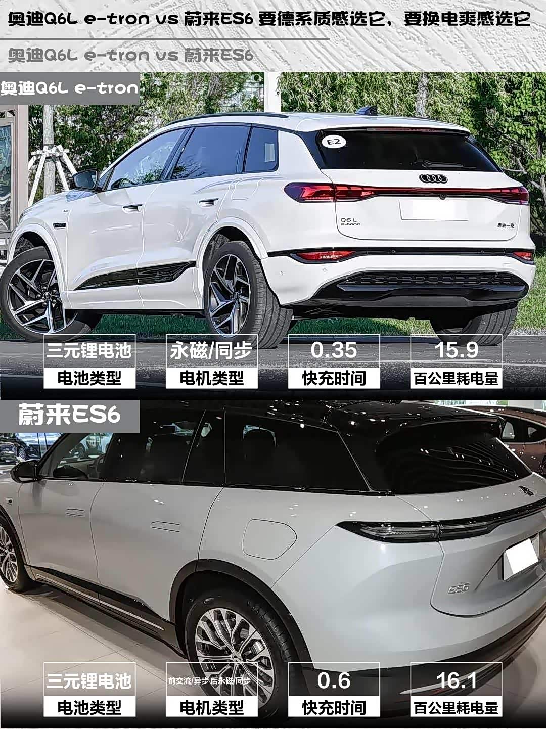最近在纠结 奥迪Q6L e-tron(参数|询价)和蔚来ES6的朋友看过来!深度体验过两台车的老司机来唠点实在的,看完保你不再选择困难症发作~🚗💨