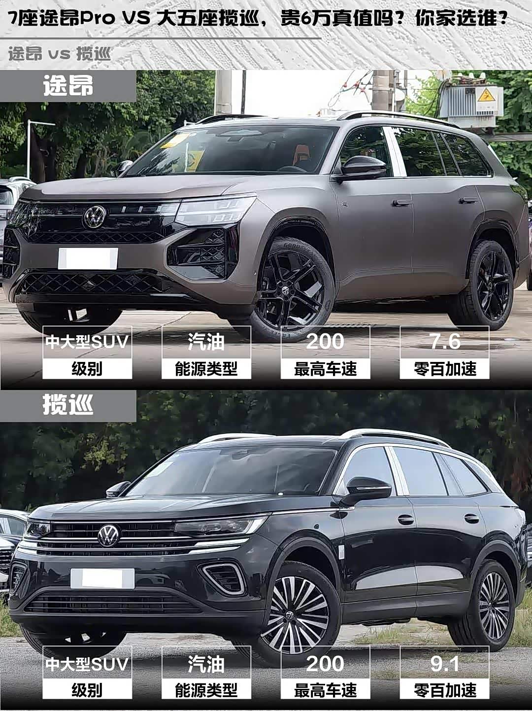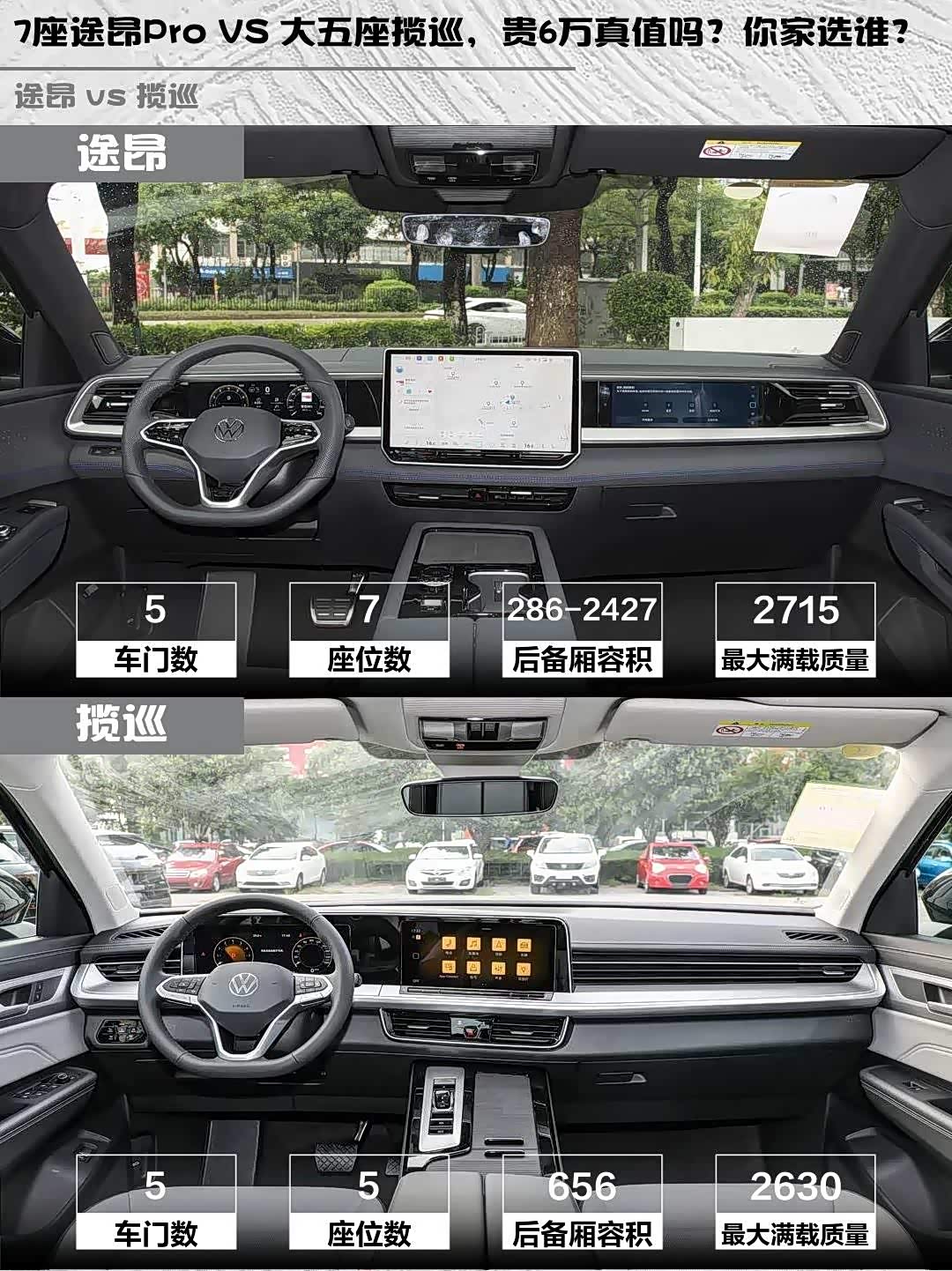 7座途昂Pro VS 大五座揽巡,贵6万真值吗?你家选谁?