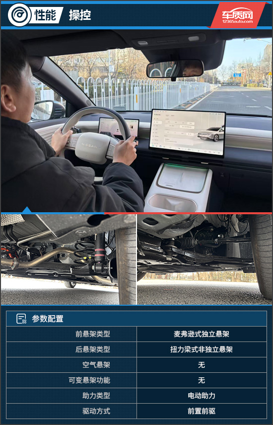 底盘方面,评测车采用前麦弗逊式独立悬架与后扭力梁式非独立悬架的组合,整体结构虽比较常规,但在舒适性调校上表现到位,对路面细碎颠簸的过滤较为充分,乘坐感受轻松舒适。需要指出,在面对幅度较大的坑洼路况时,悬架会出现一定程度的弹跳,但瑕不掩瑜。转向方面,方向盘手感轻盈,初段响应灵敏,使车辆在日常驾驶中具备一定的操控乐趣。
